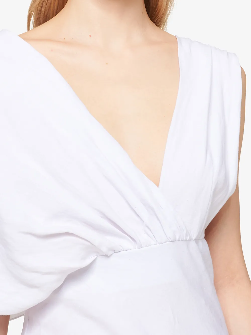 Подробнее о товаре: Платье с V-образным вырезом от Miu Miu, v-образная горловина, асимметричные рукава, приталенный крой и средней длины, цвет белый, pOSITIVELY CONSCIOUS: Как минимум 50% основного материала, из которого сделан этот товар, отвечает нашим критериям экологичности, в состав входят органические или переработанные материалы и ткани, которые признаны более экологичными (лен, рами, тенсел и т,д,)