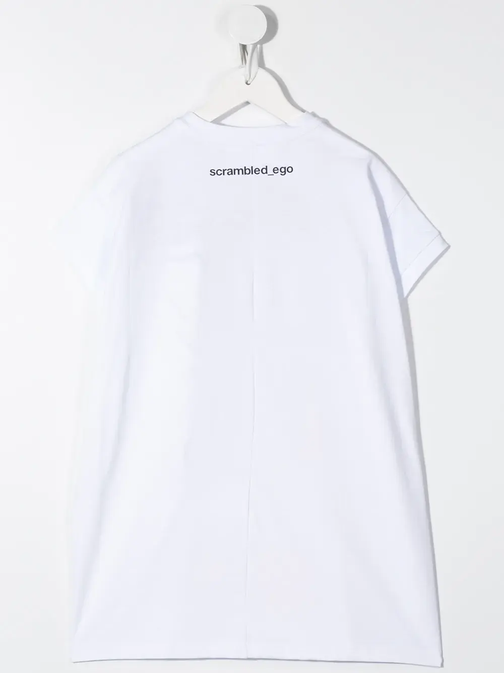 Футболка Supergirl от Scrambled_Ego, круглый вырез, короткие рукава, принт спереди, вышитая деталь, принт с логотипом сзади и прямой подол, цвет белый