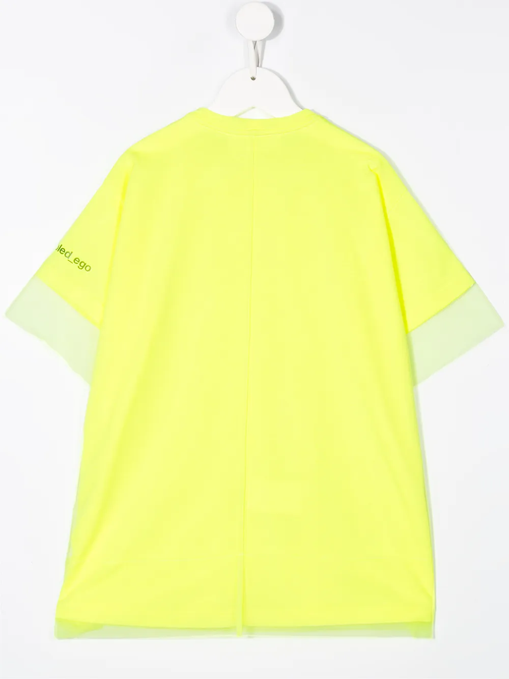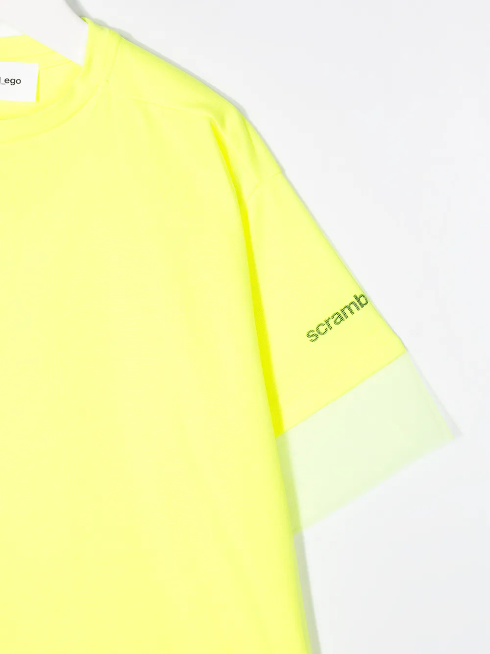 Футболка оверсайз от Scrambled_Ego, свободный крой, контрастная вставка, круглый вырез, короткие рукава и прямой подол, цвет желтый