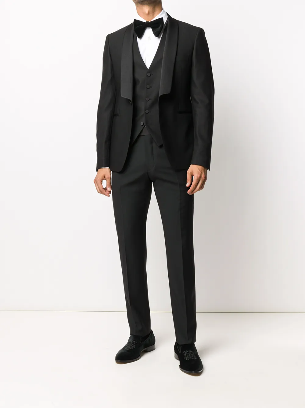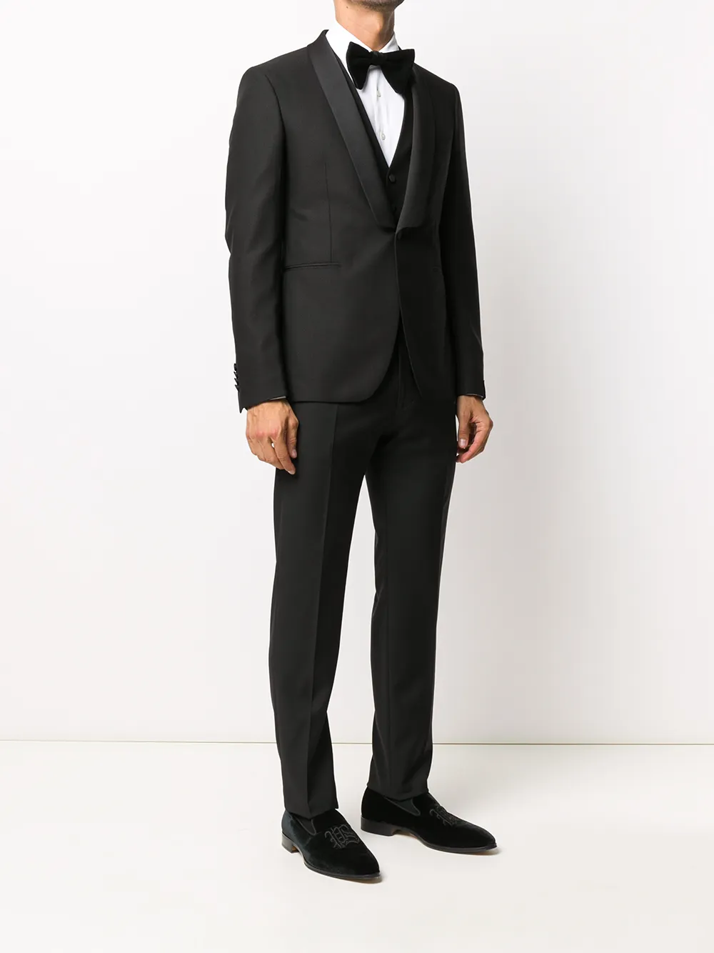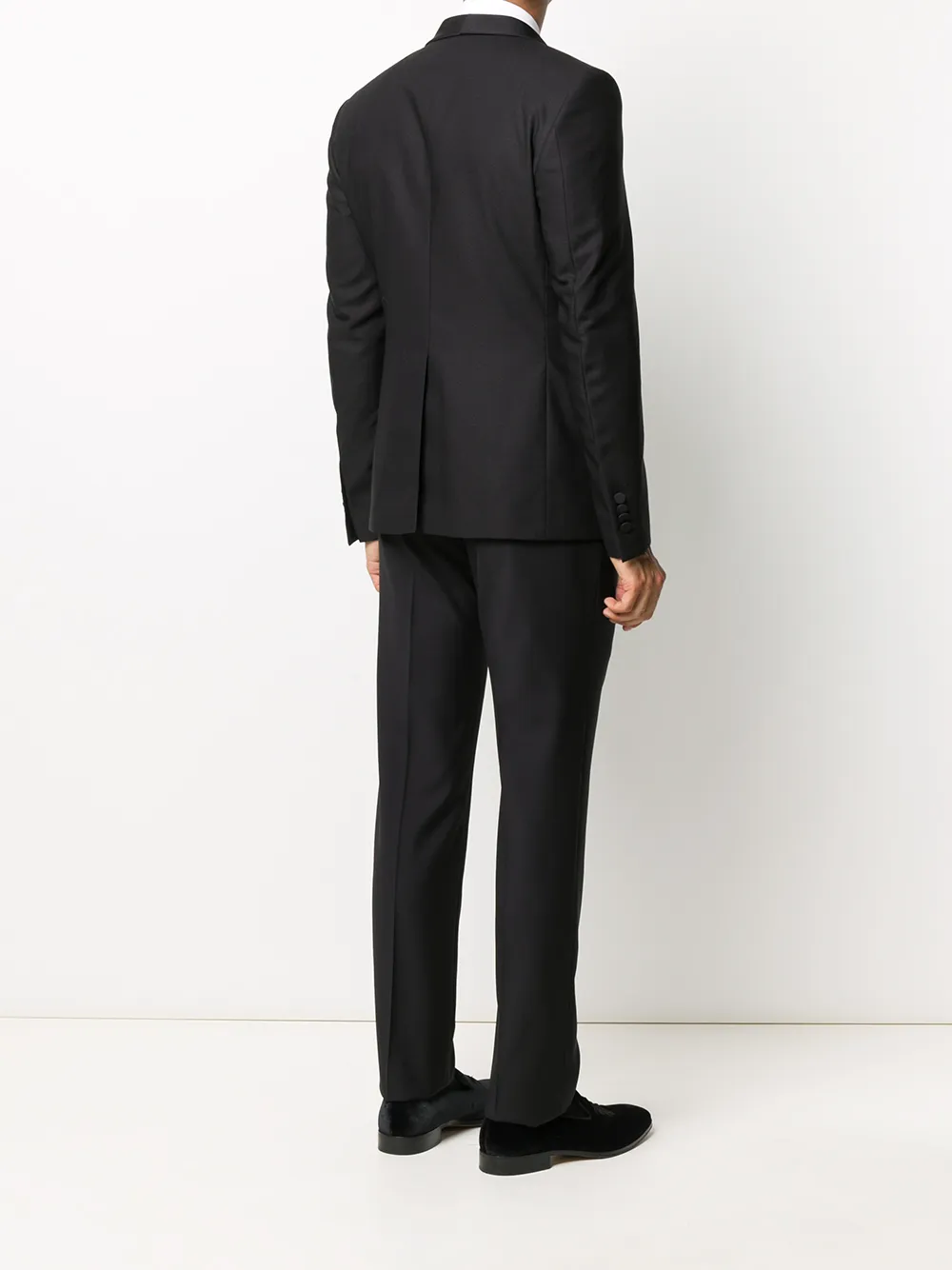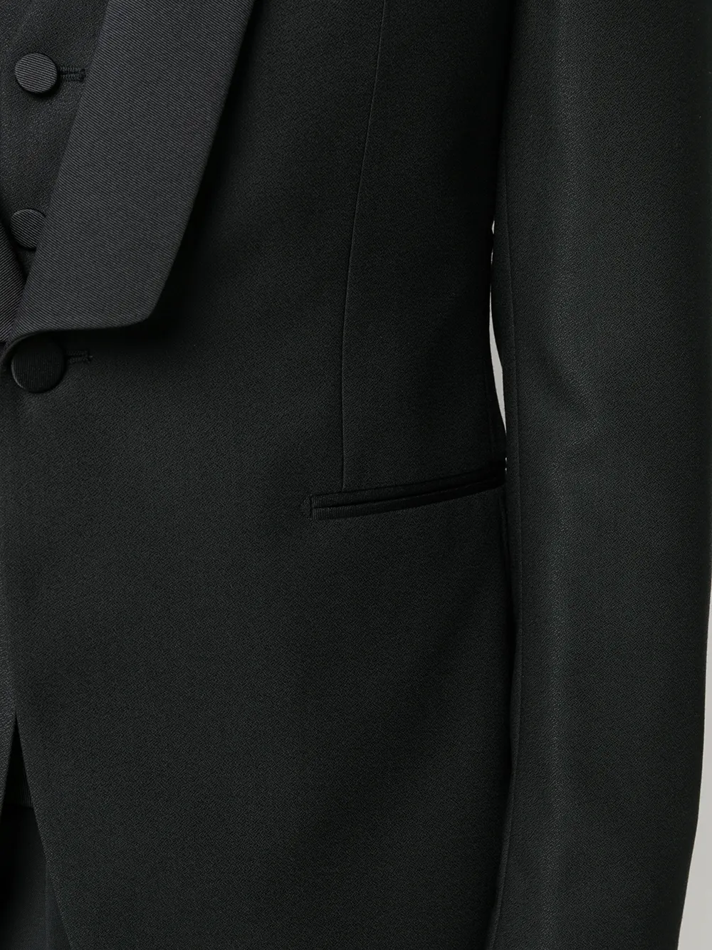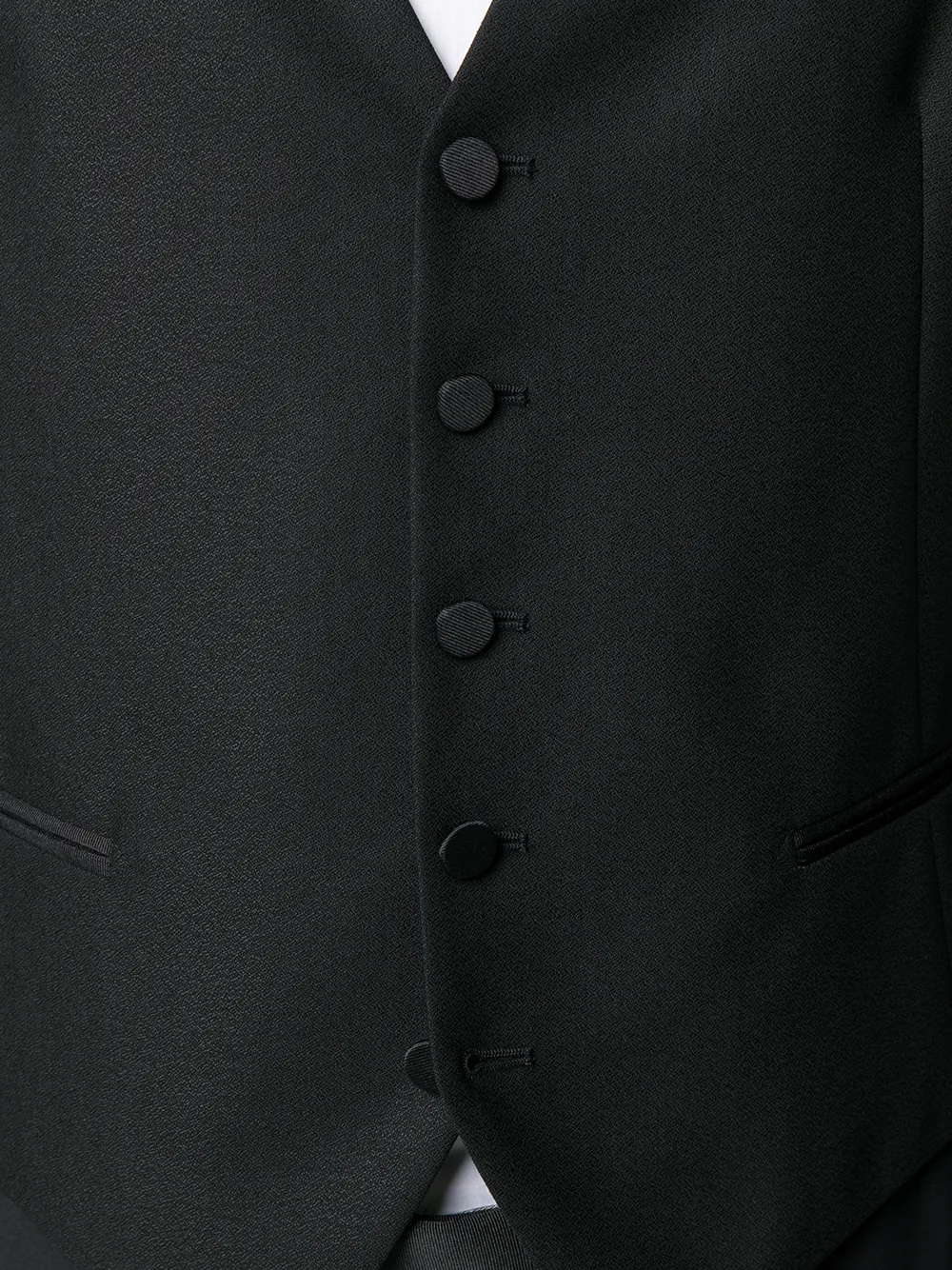 Подробнее о товаре: Лацканы-шалька, застежка на пуговицах спереди, два передних кармана с листочкой, длинные рукава, манжеты на пуговицах, V-образный вырез, застежка на пуговицах спереди, без рукавов, регулируемый ремешок сзади, застежка на молнию и крючок, петли для ремня, два прорезных кармана по бокам, два кармана с листочкой сзади и строгий крой, цвет черный