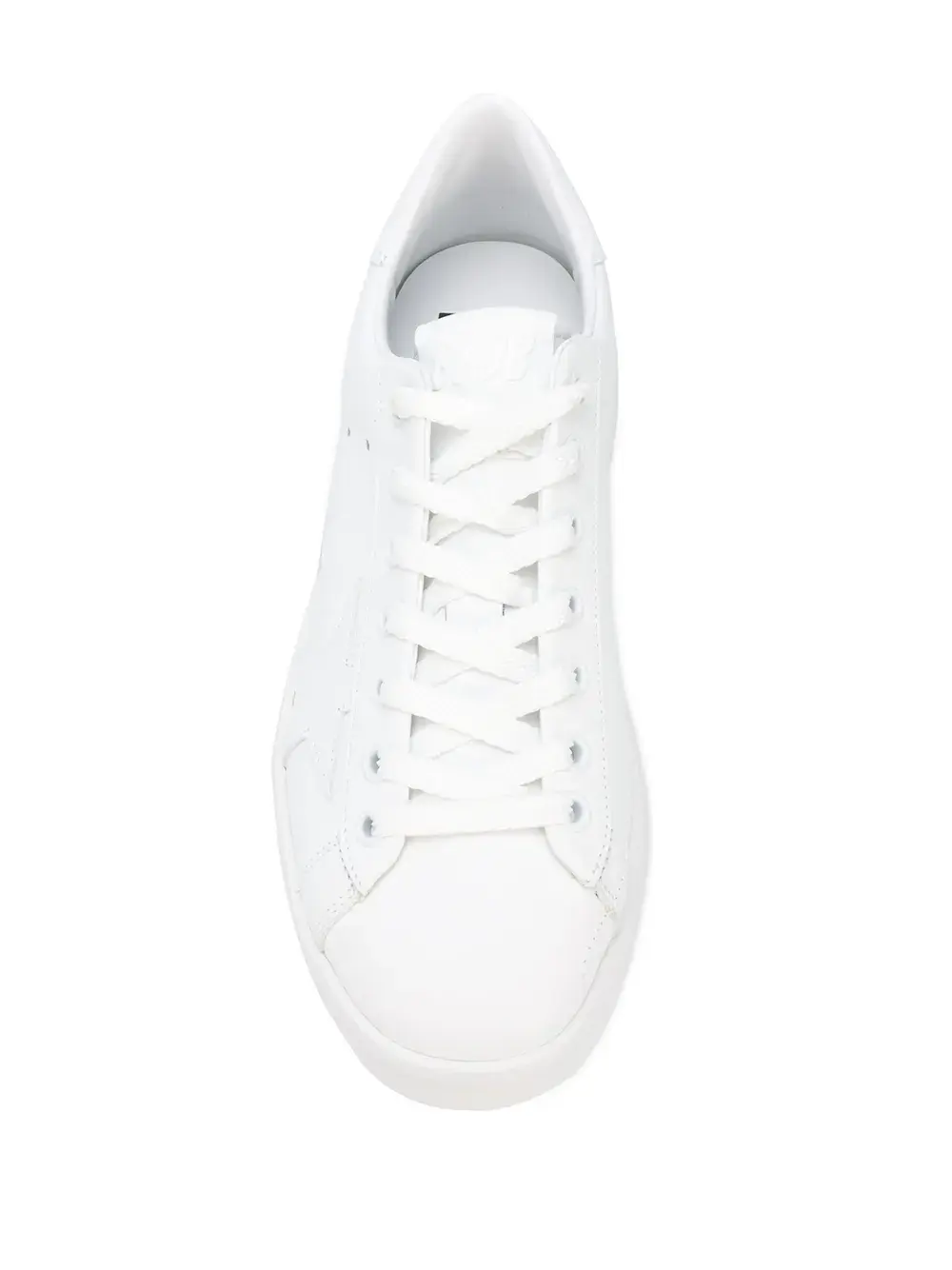 Закругленный носок, шнуровка спереди, золотистый логотип, нашивка в форме звезды и плоская резиновая подошва, цвет белый