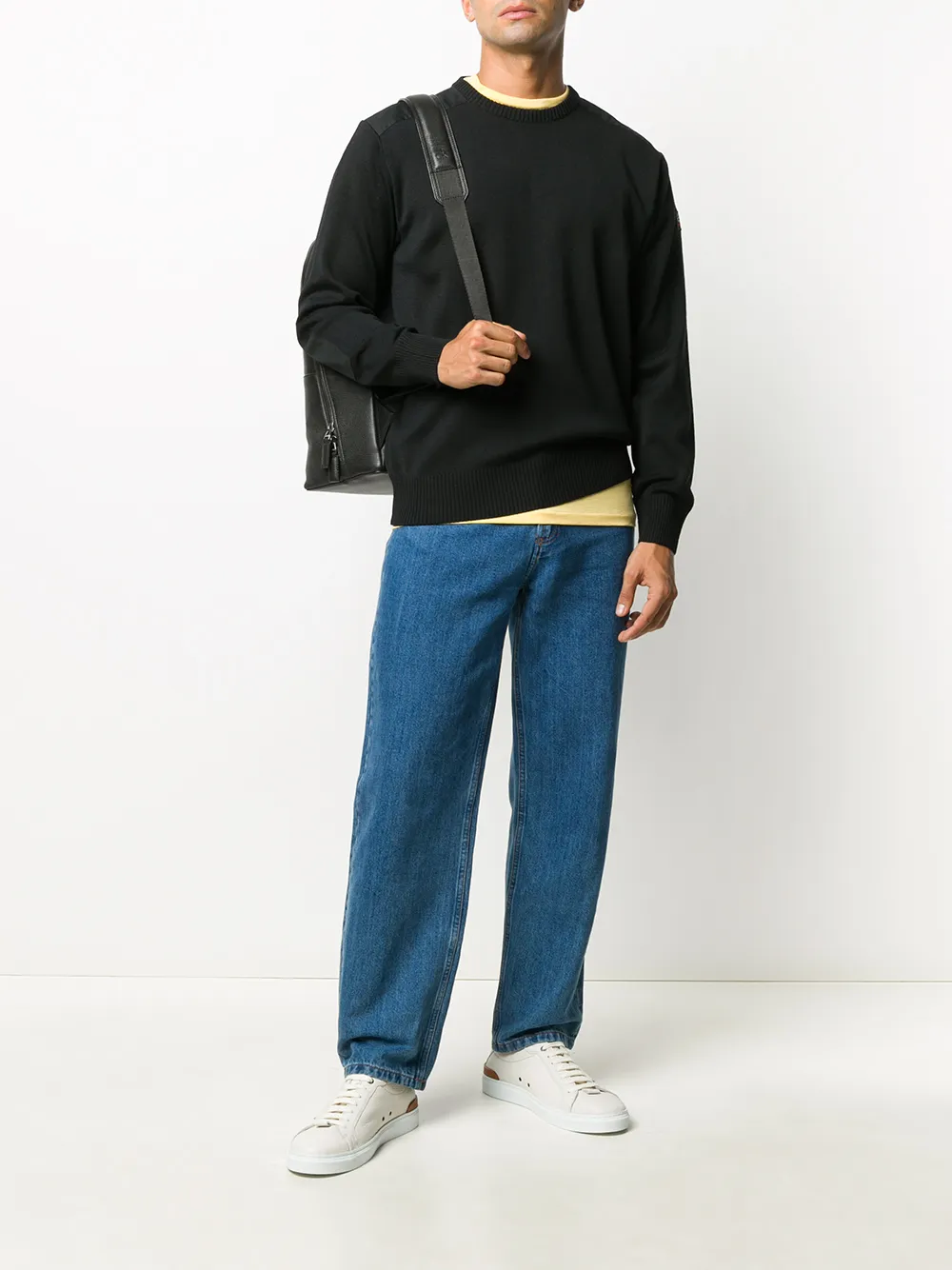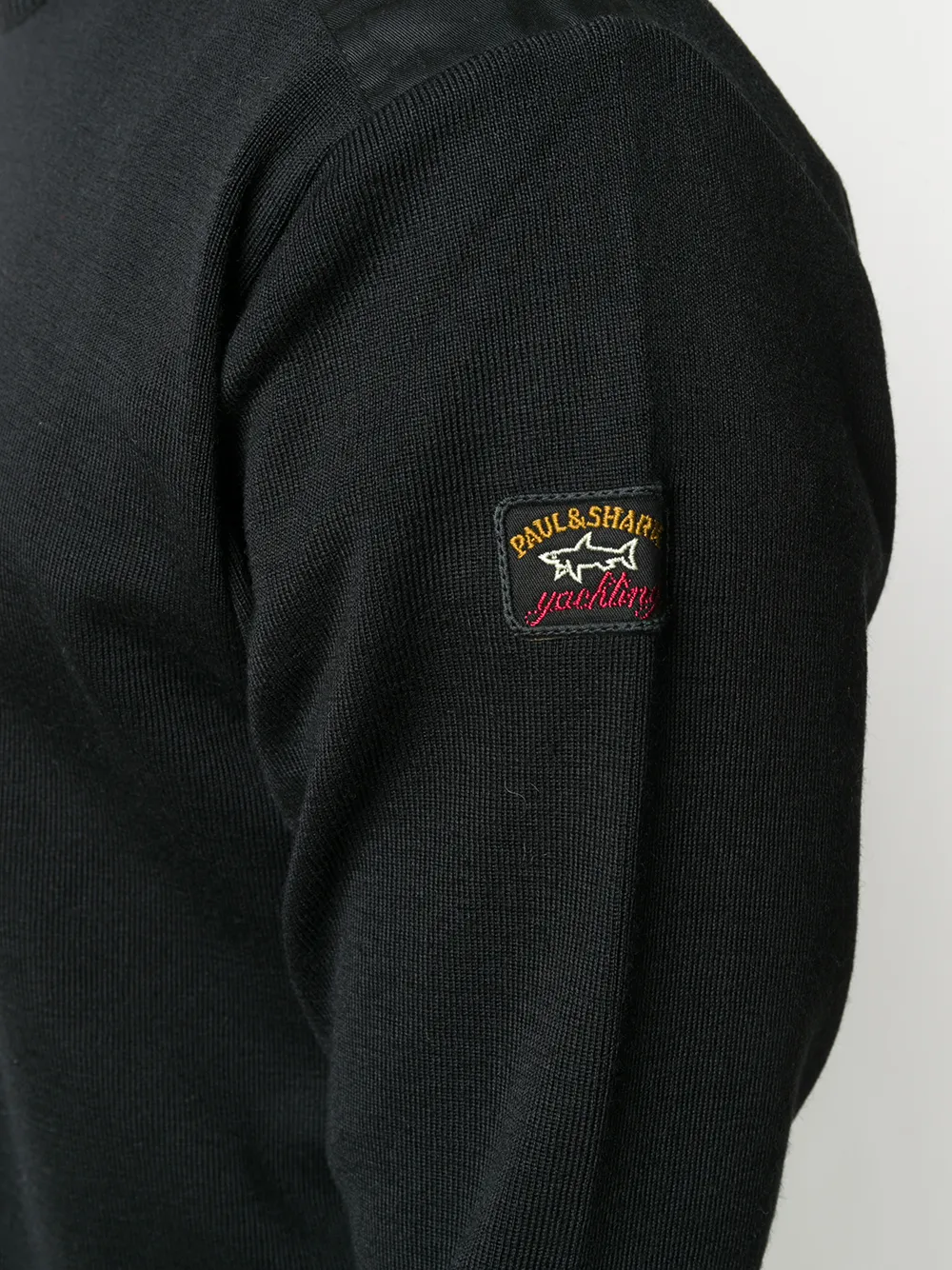 Свитер с вышитым логотипом от Paul & Shark, круглый вырез под горло, длинные рукава, эластичный подол, эластичные манжеты и свободный крой, цвет черный