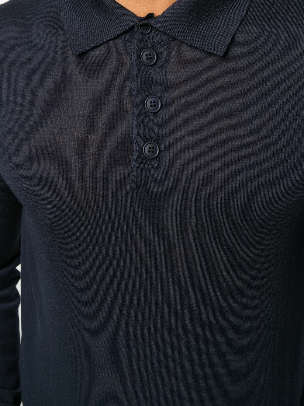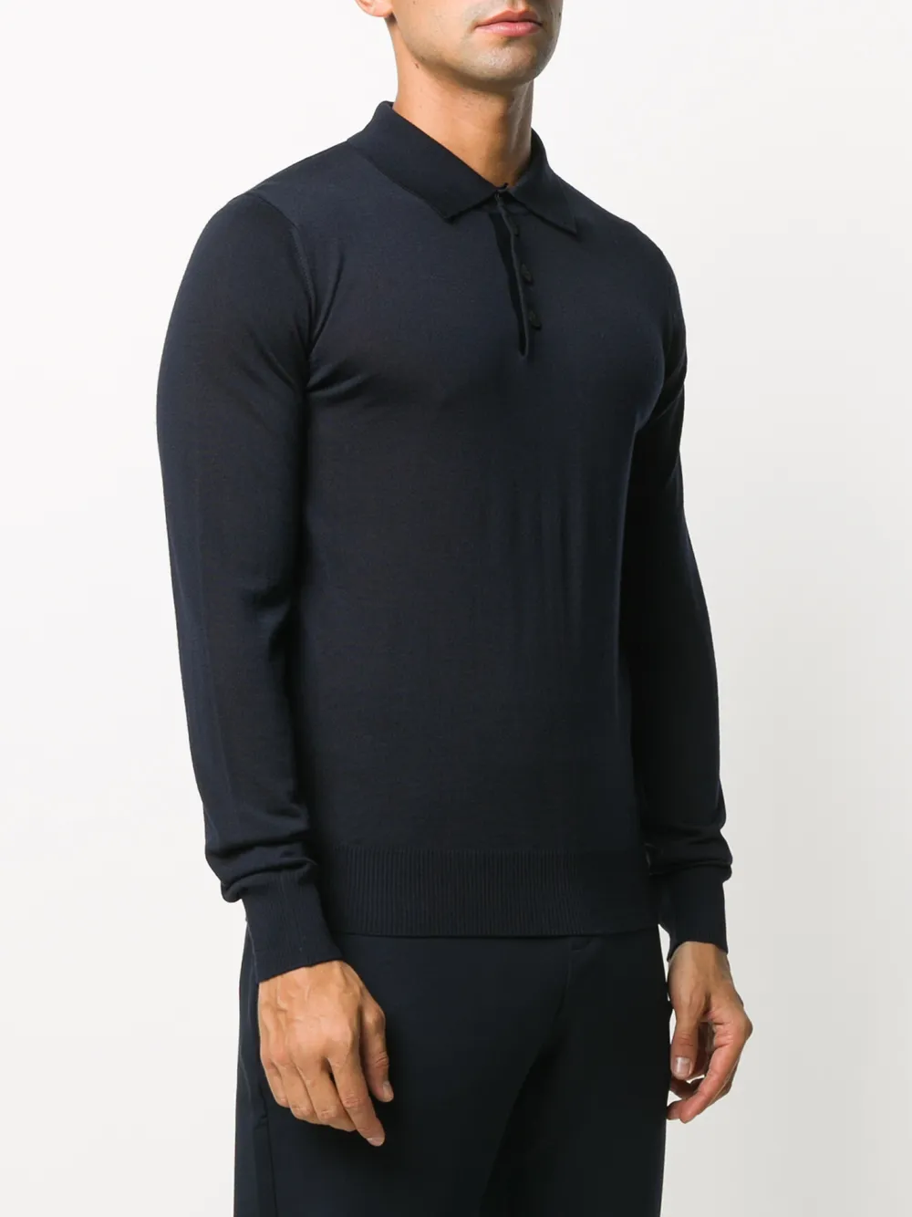 Воротник поло, длинные рукава, манжеты в рубчик и прямой подол