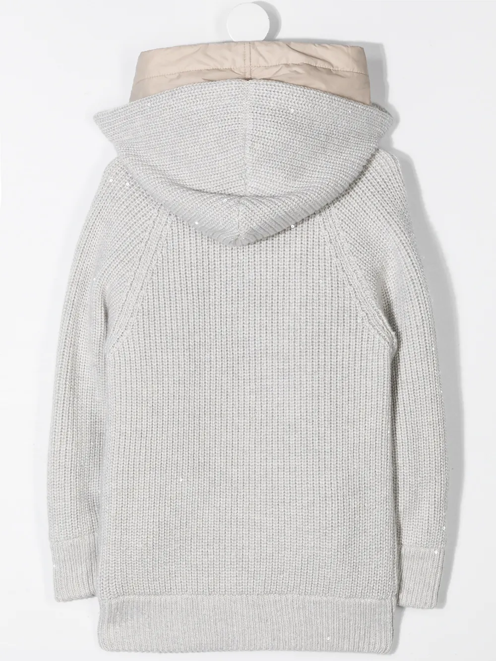 Пальто в рубчик с капюшоном Brunello Cucinelli Kids, серый