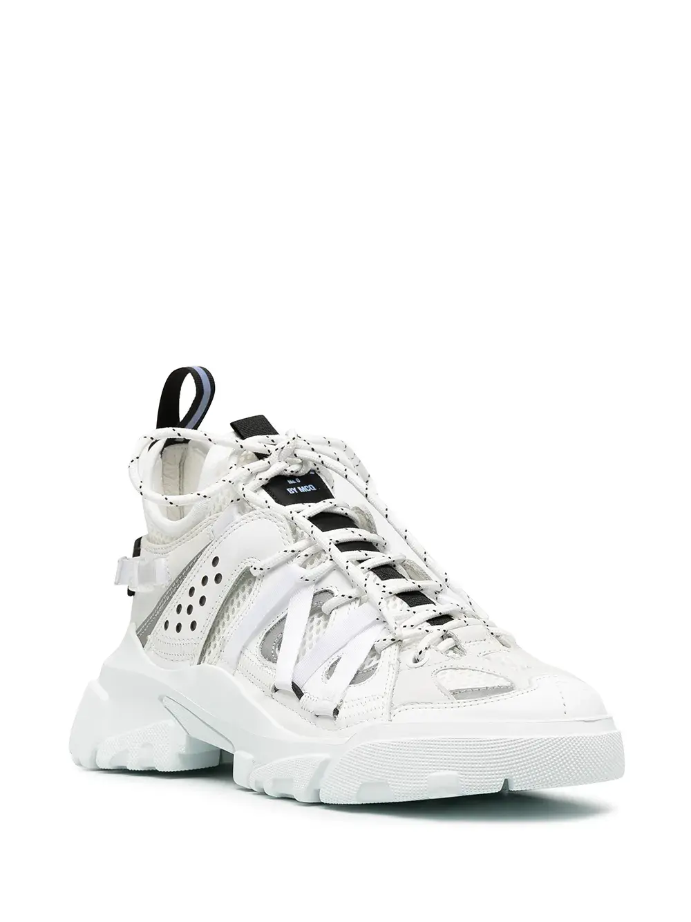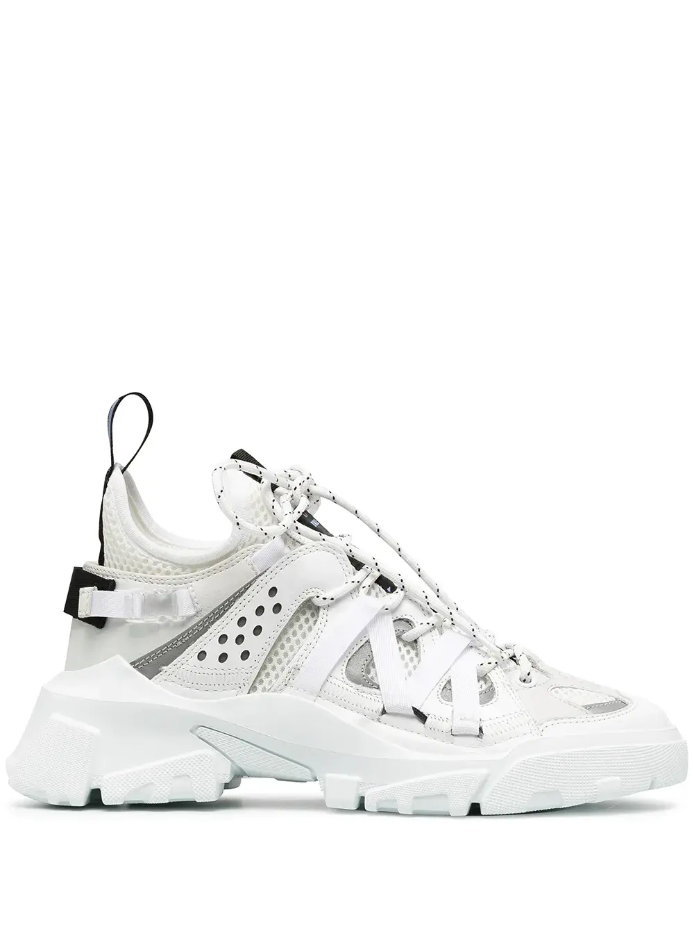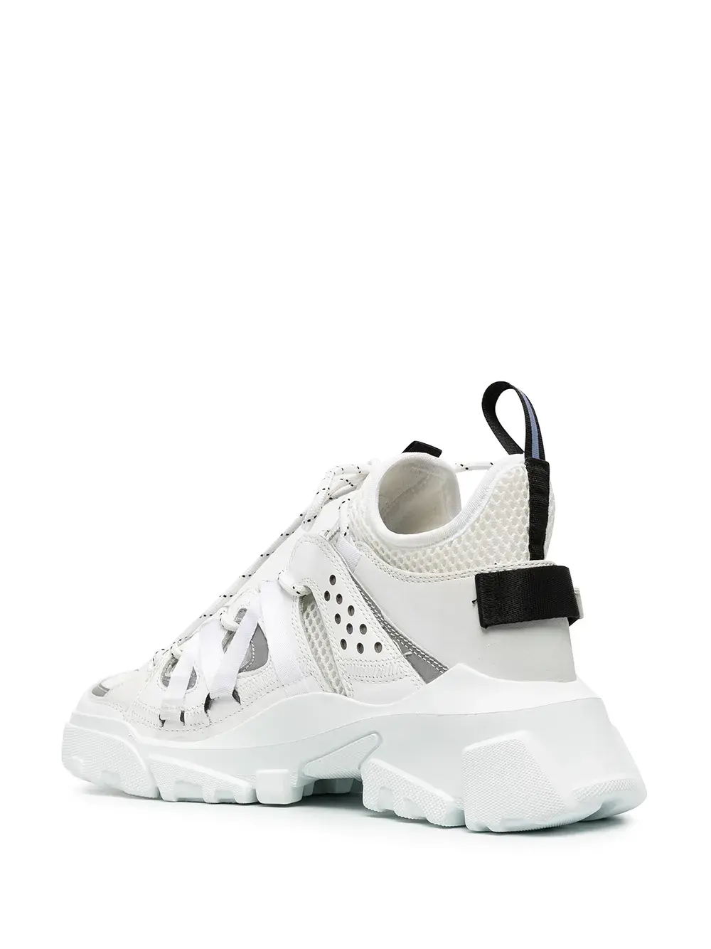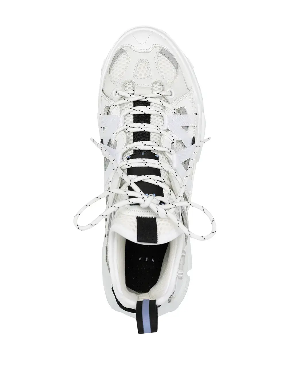 Сетчатые вставки, закругленный носок, шнуровка спереди, двойная петля для подтягивания и массивная резиновая подошва, цвет белый