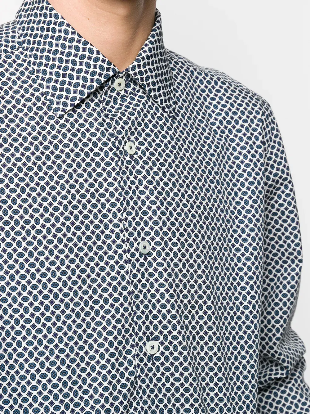 Геометричный принт, воротник на пуговицах, длинные рукава и манжеты на пуговицах