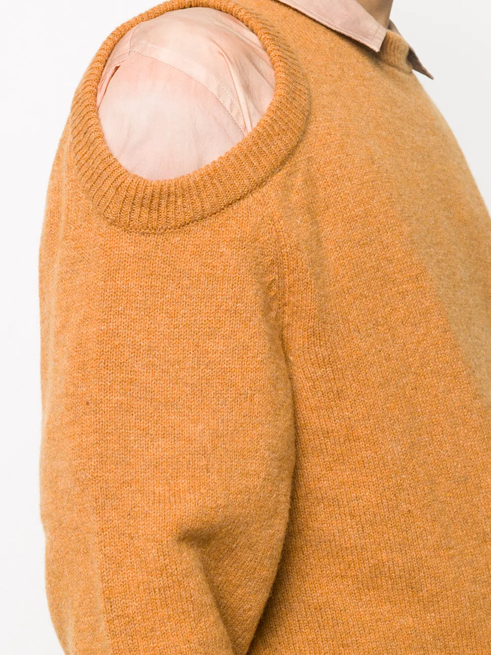 Тонкая вязка, круглый вырез, вырезные детали и длинные рукава, цвет оранжевый