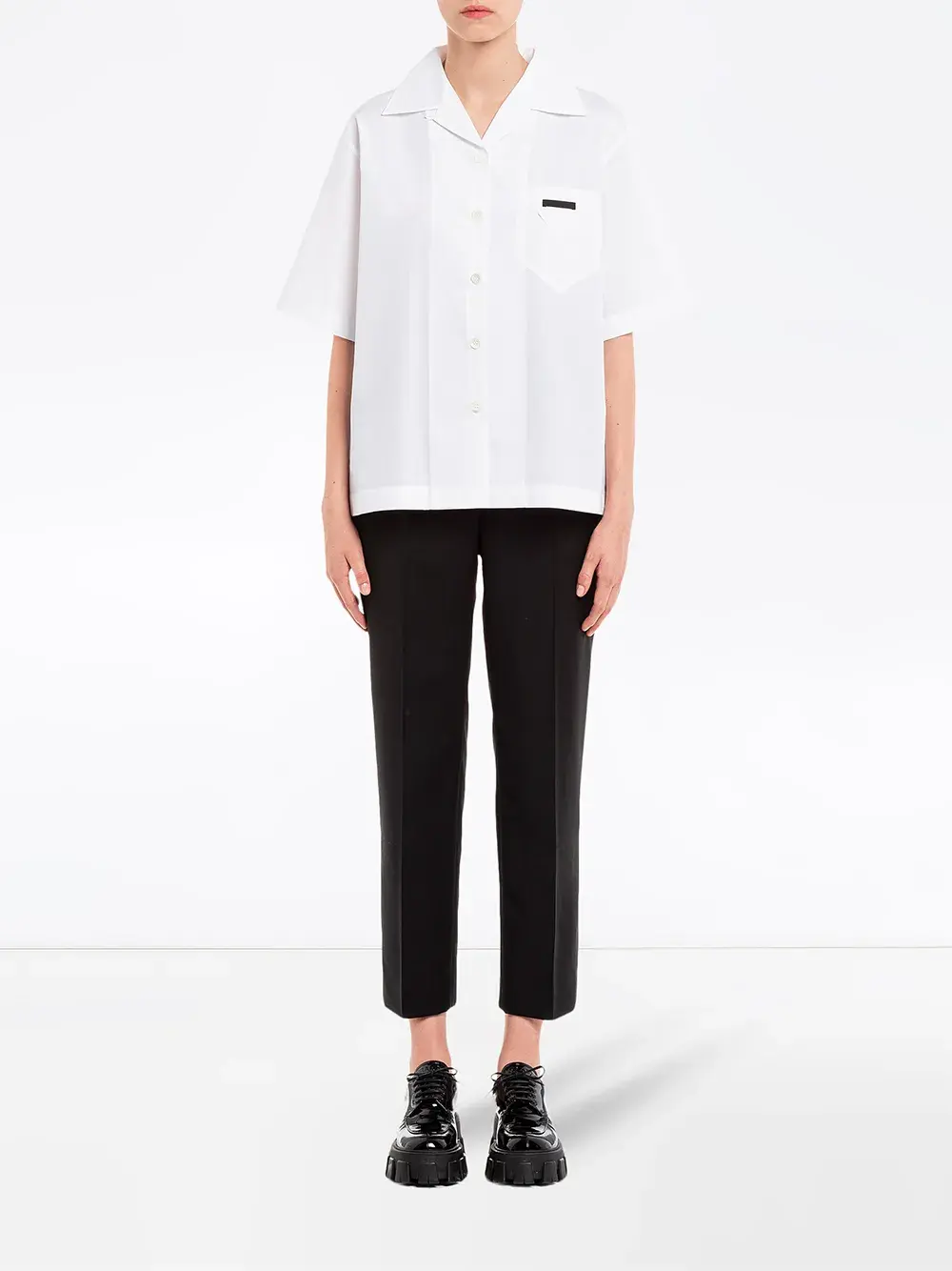 Короткие рукава, нагрудный накладной карман и свободный крой, цвет белый