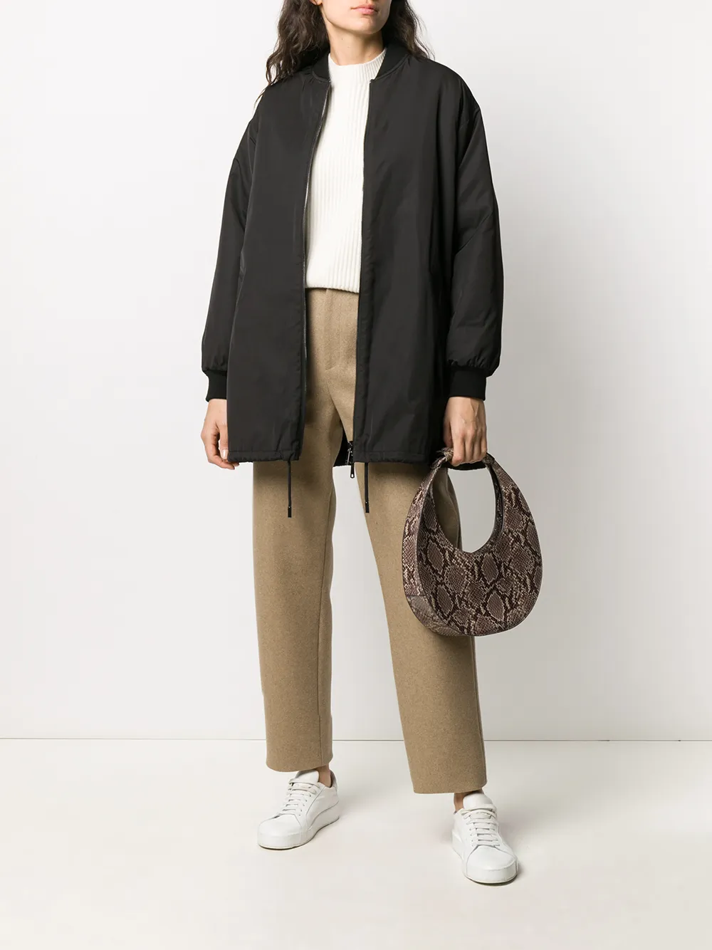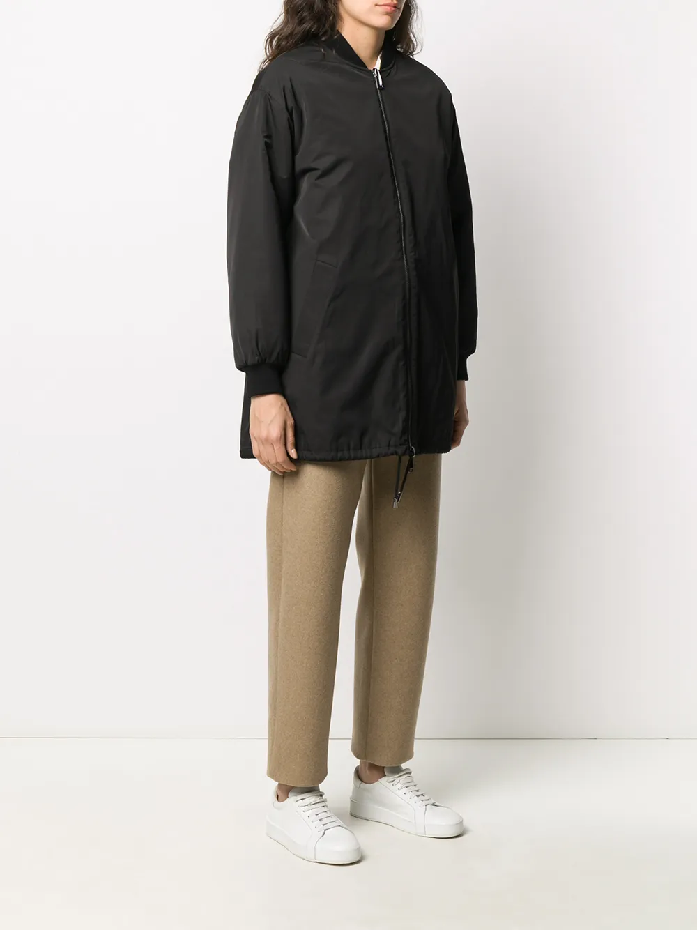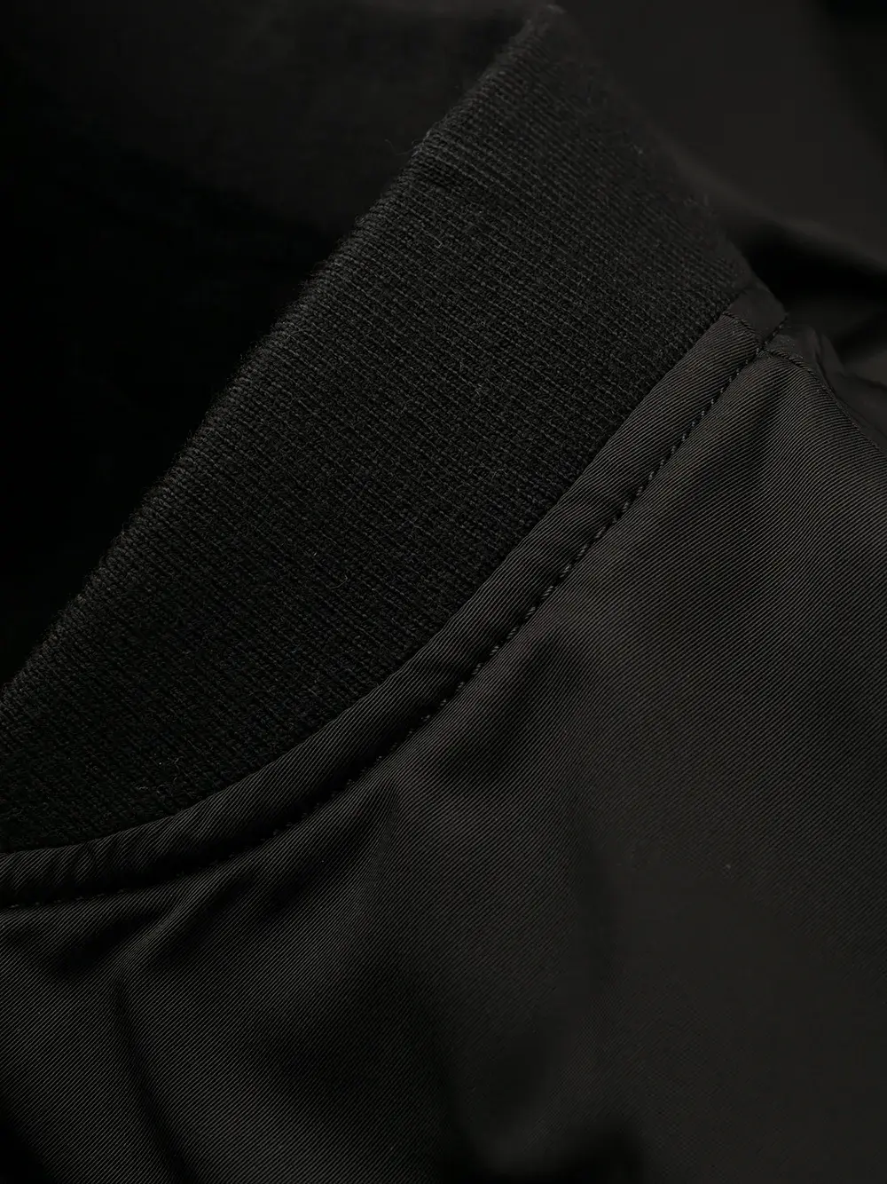 Бейсбольный воротник, застежка на молнии спереди, подол с кулиской, длинные рукава, манжеты в рубчик и два кармана по бокам, цвет черный