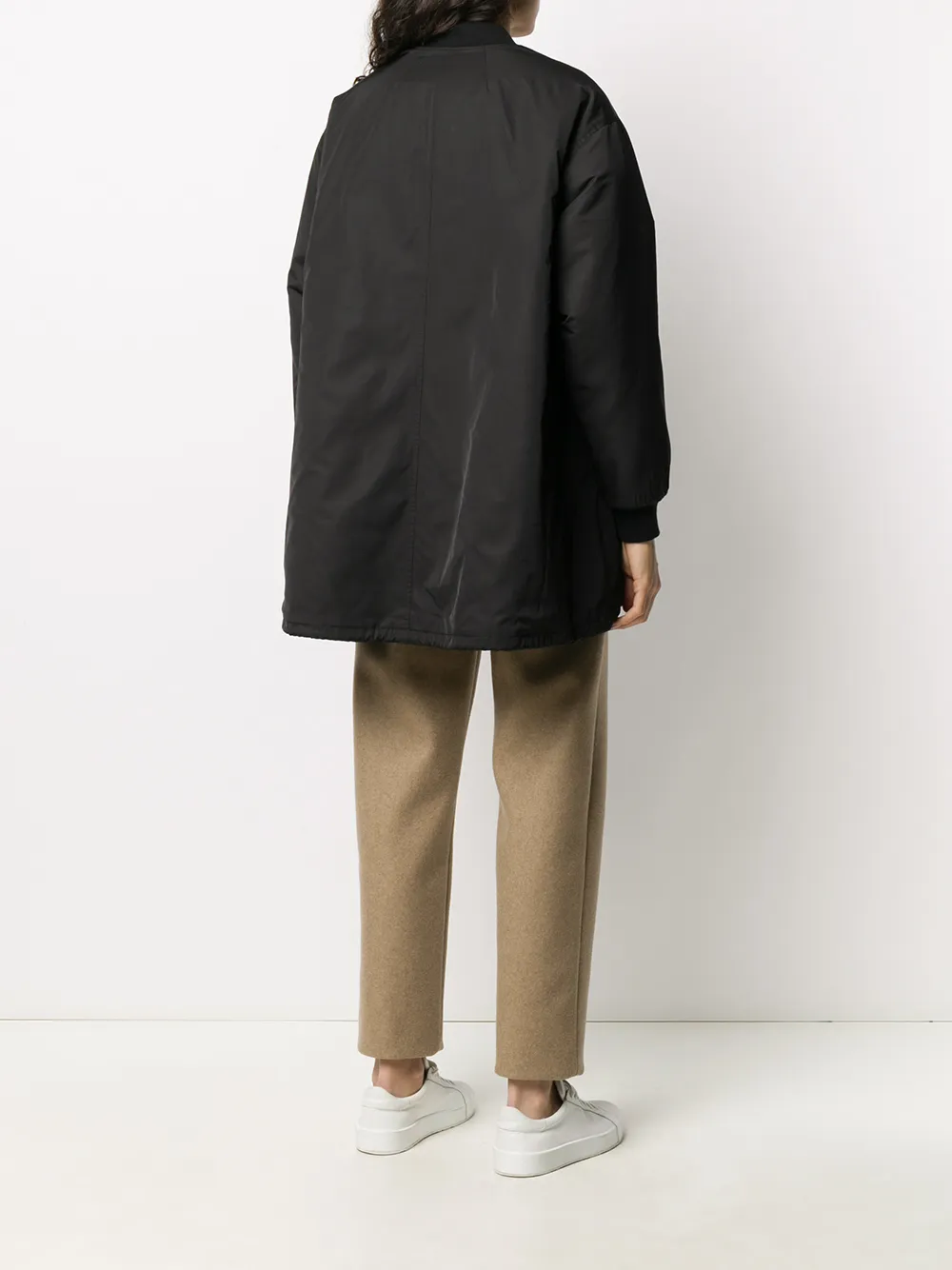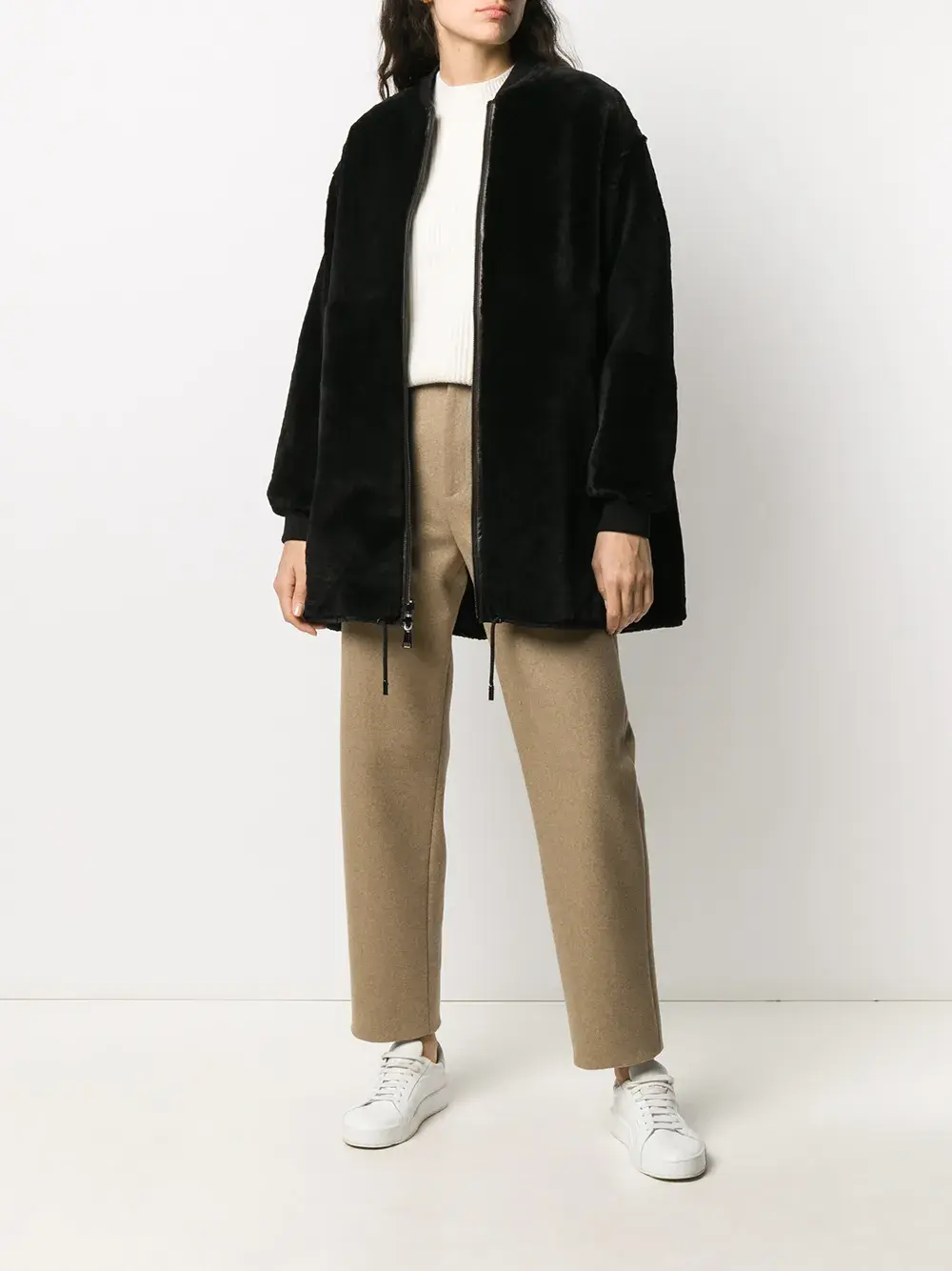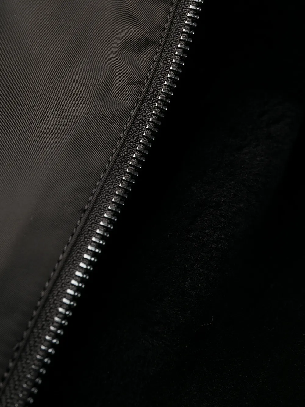 Бейсбольный воротник, застежка на молнии спереди, подол с кулиской, длинные рукава, манжеты в рубчик и два кармана по бокам, цвет черный