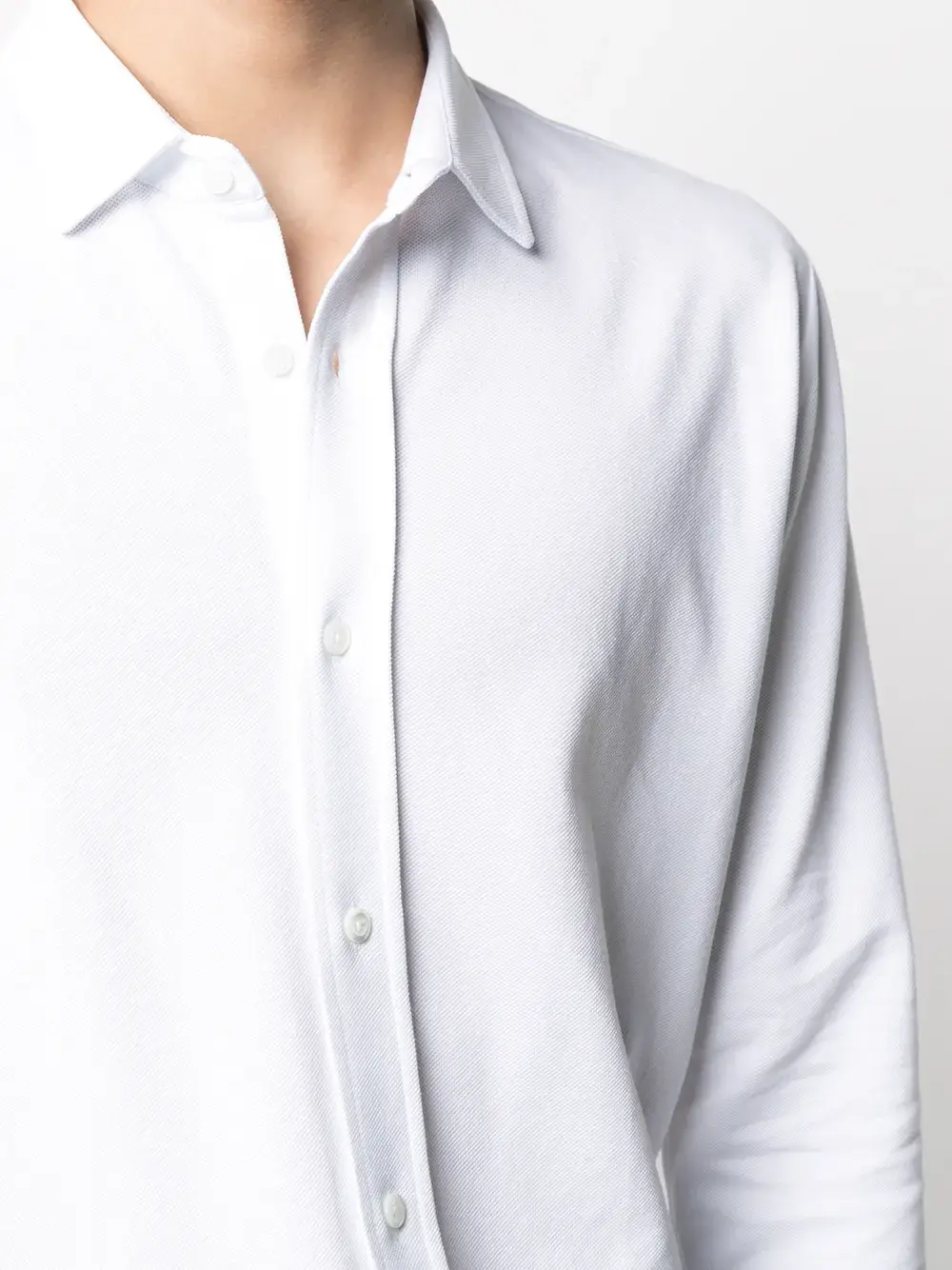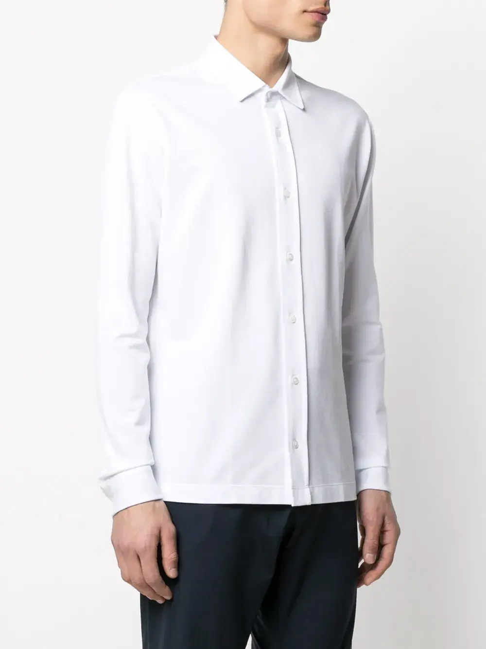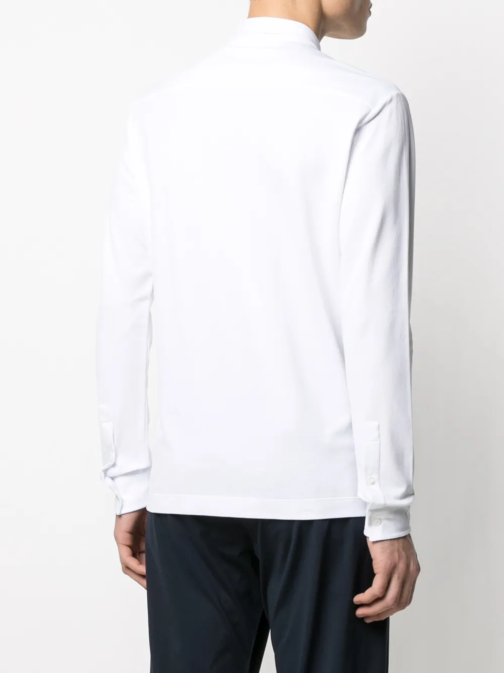 Воротник на пуговицах, длинные рукава и рукава с манжетами на пуговицах, цвет белый