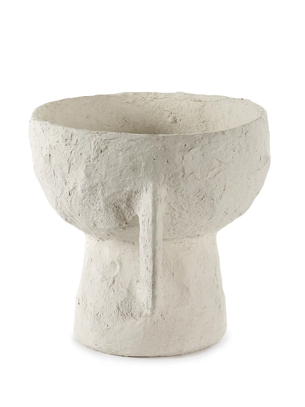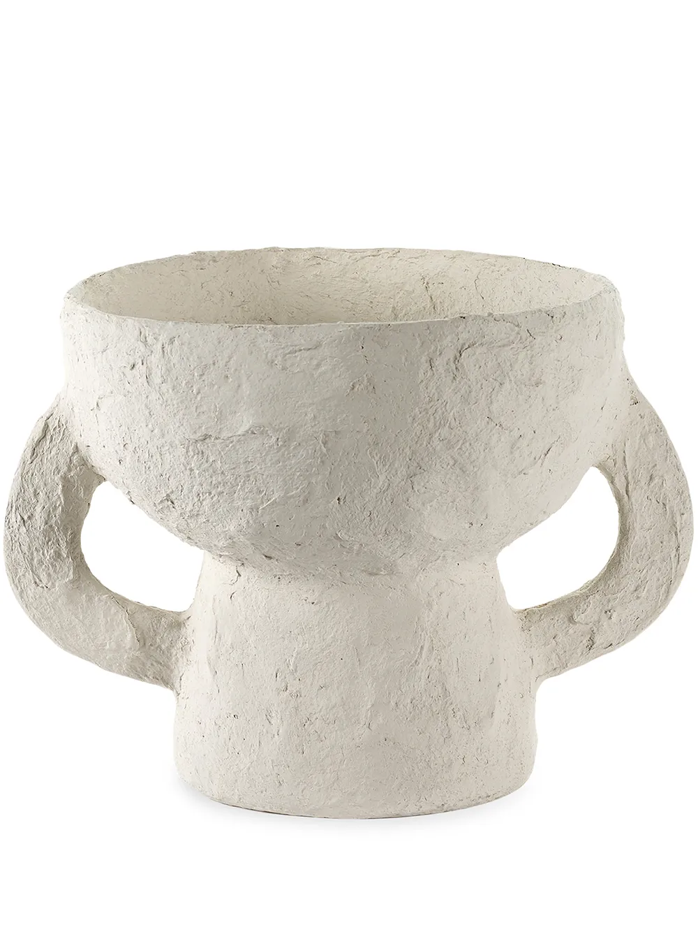 Две закругленные ручки по бокам, грубая огранка и скругленные углы, цвет белый