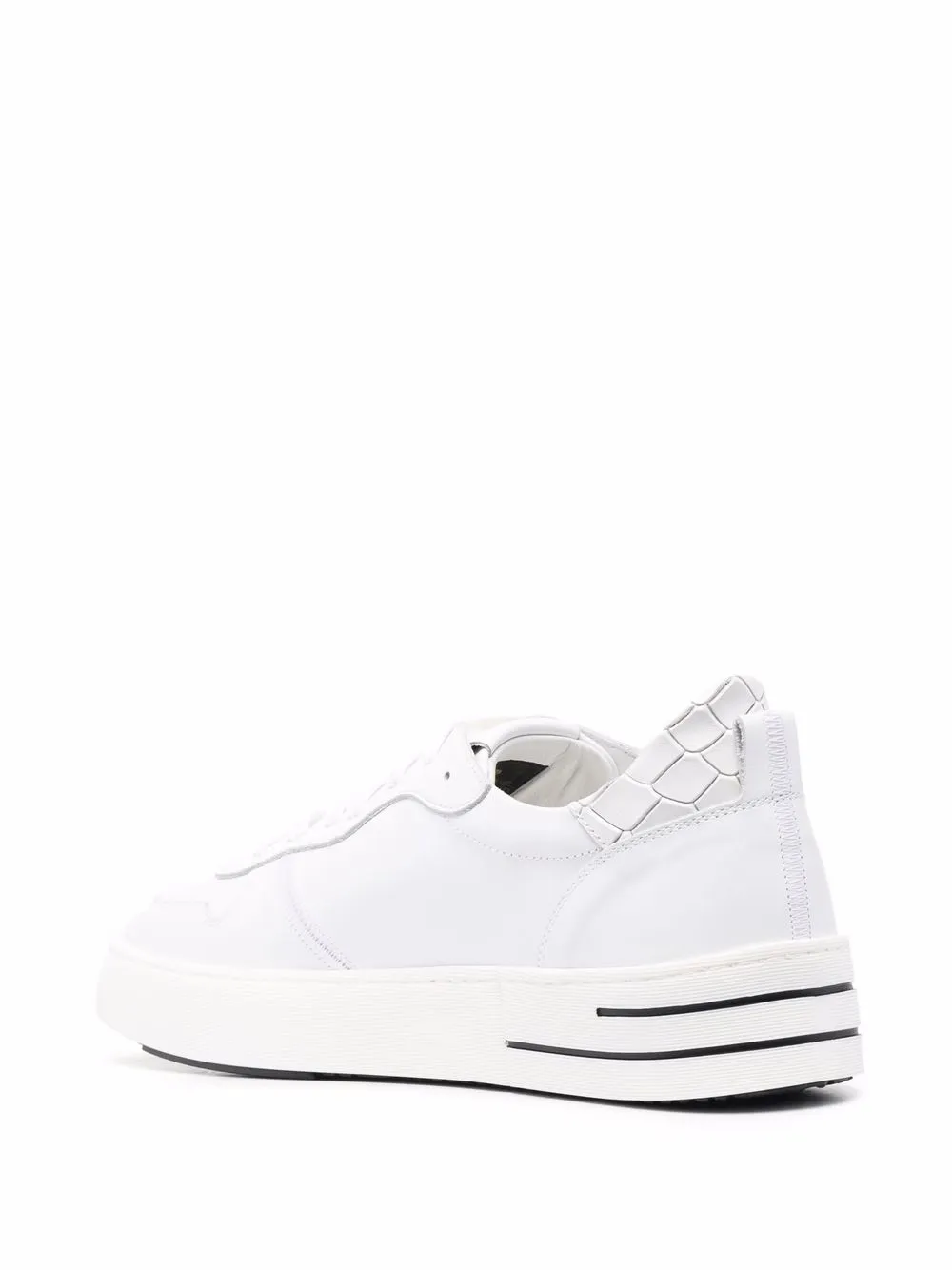 Тиснение под кожу крокодила, логотип сбоку, язычок с логотипом, строчка в тон, носок с декоративной перфорацией, закругленный носок, шнуровка спереди, петля для подтягивания сзади и плоская платформа. .