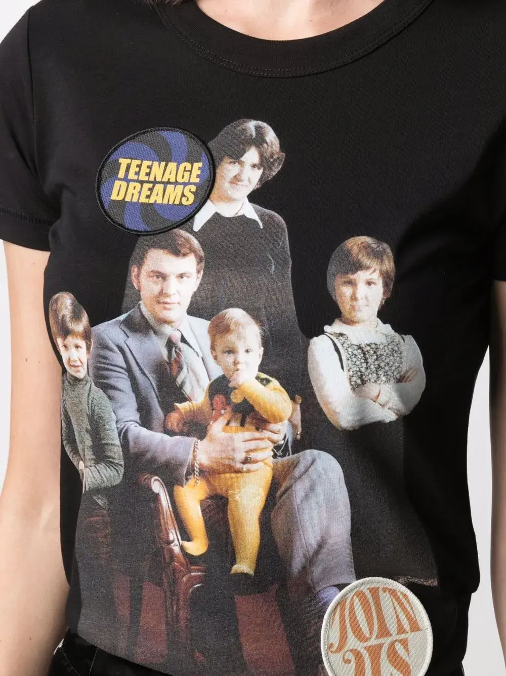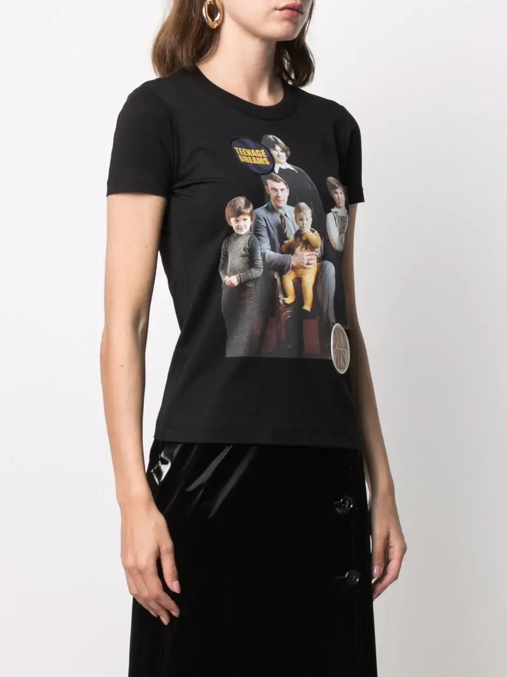 Круглый вырез, нашивка, короткие рукава и прямой подол, цвет черный