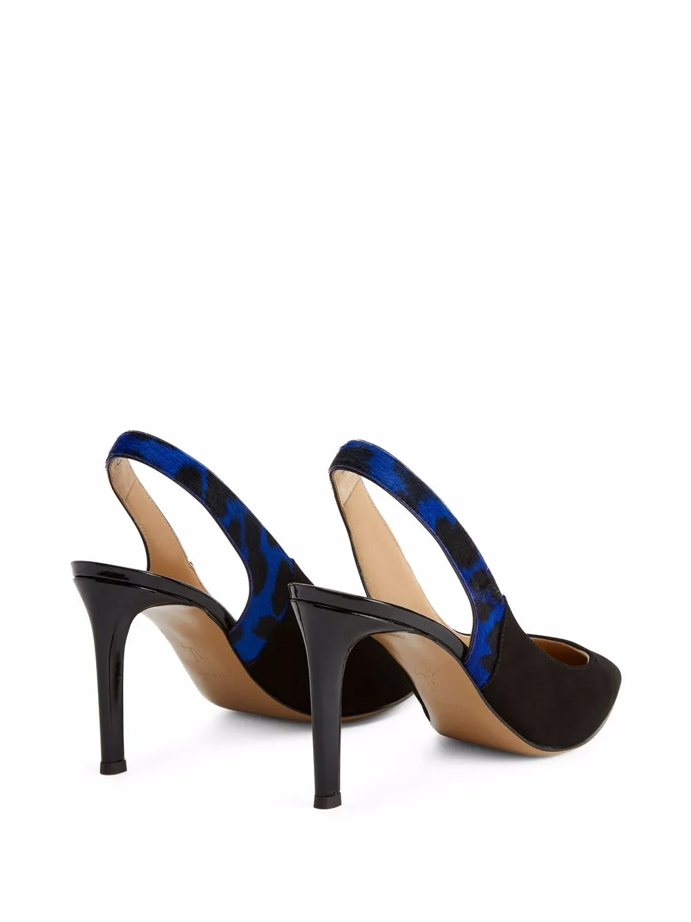 Леопардовый принт, заостренный носок, ремешок на пятке, стелька с логотипом и высокий каблук, цвет черный