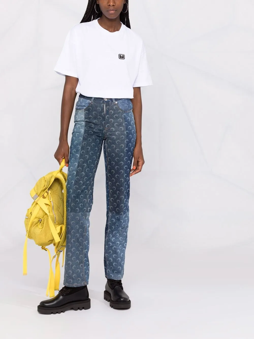 Нашивка, круглый вырез, короткие рукава и прямой подол, цвет белый