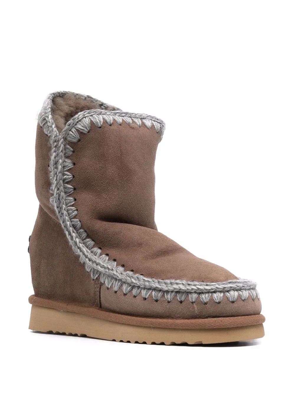 Обметочный шов, металлический логотип, закругленный носок, подкладка из овечьей шерсти, модель без застежки, длина до середины икры и плоская резиновая подошва