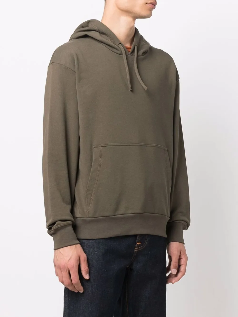 Детали в рубчик, принт с надписью сбоку, затягивающийся на шнурок капюшон, карман-муфта и длинные рукава
