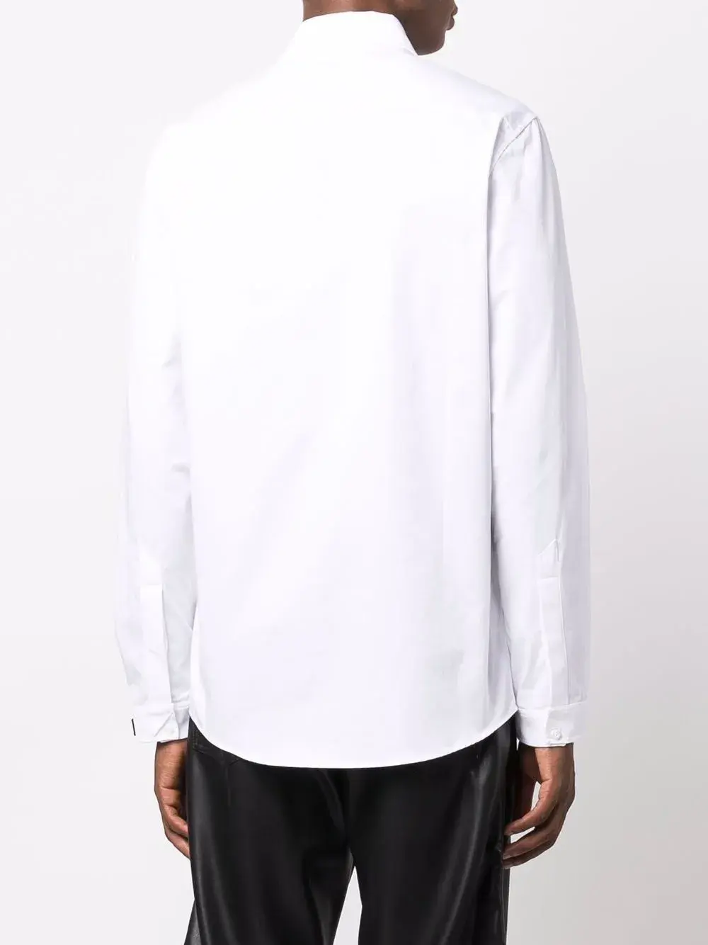 Воротник на пуговицах, логотип спереди, потайная застежка спереди, длинные рукава и закругленный подол, цвет белый