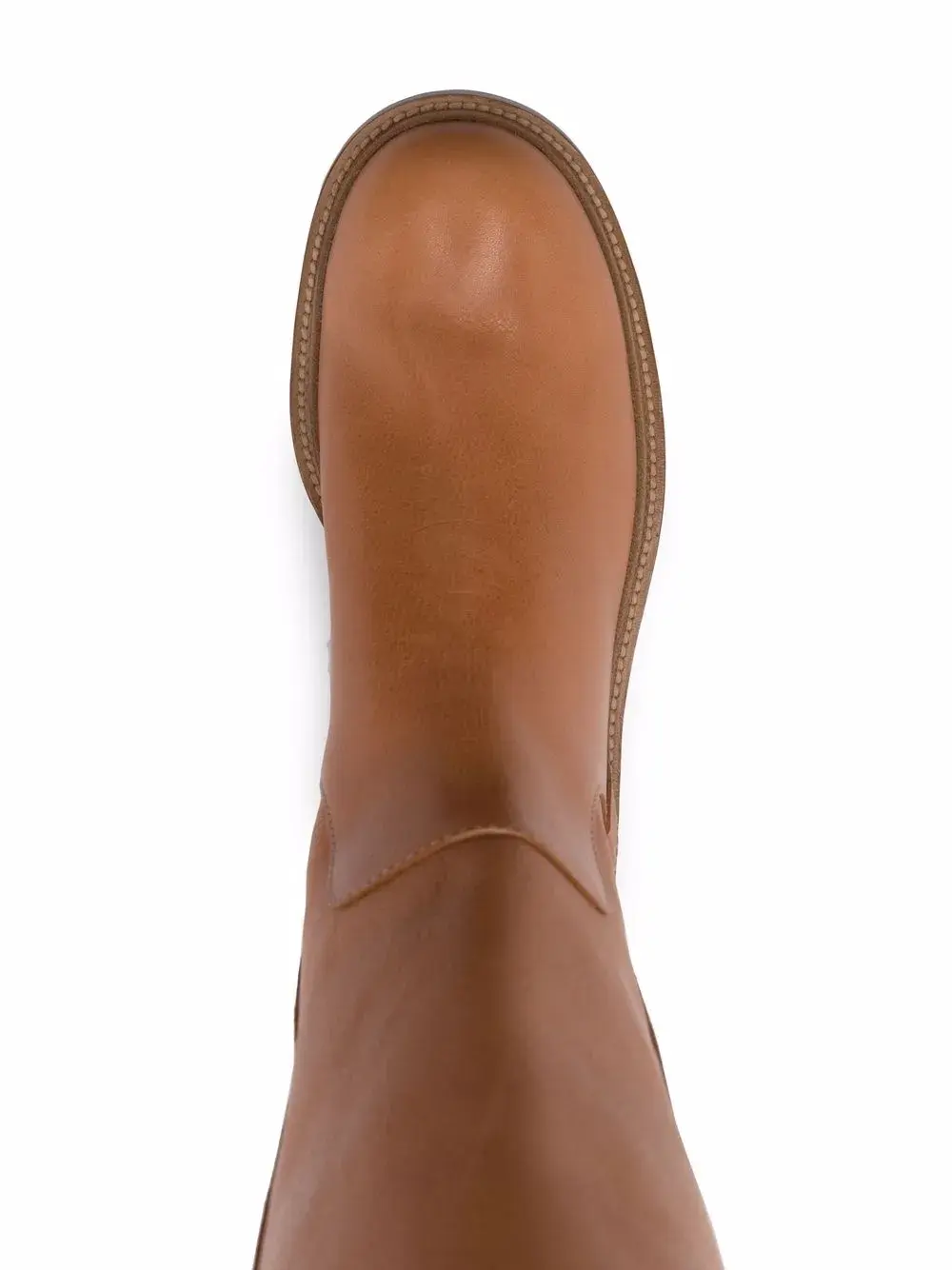Закругленный носок, вставки, контрастная строчка, двойная петля для подтягивания, стелька с логотипом и низкий блочный каблук, цвет коричневый