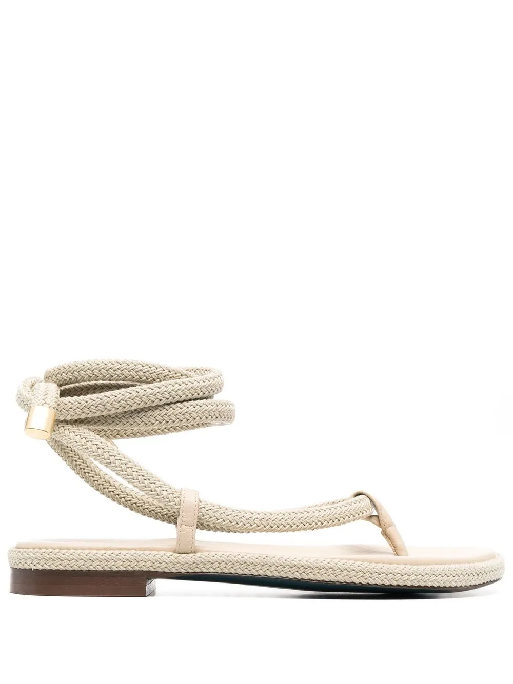 Браслет в несколько оборотов, веревочный декор, золотистая фурнитура, выгравированный логотип, застежка на узел, кожаная стелька с логотипом, т-образный ремешок и низкий блочный каблук