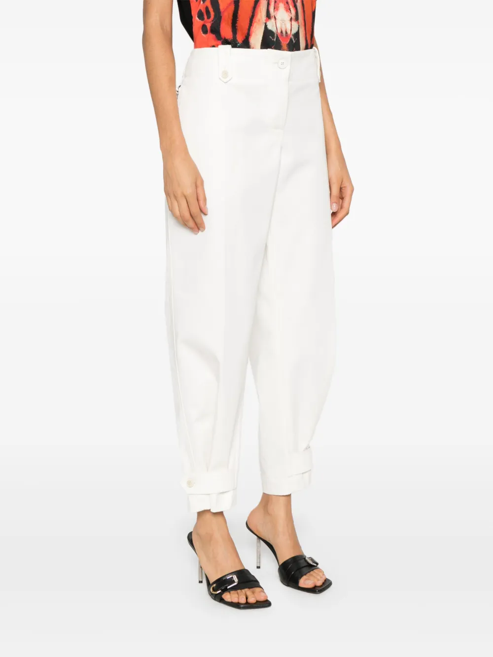 зауженный крой: брюки плотно сидят на талии, свободно сидят на бедрах и сужаются книзу