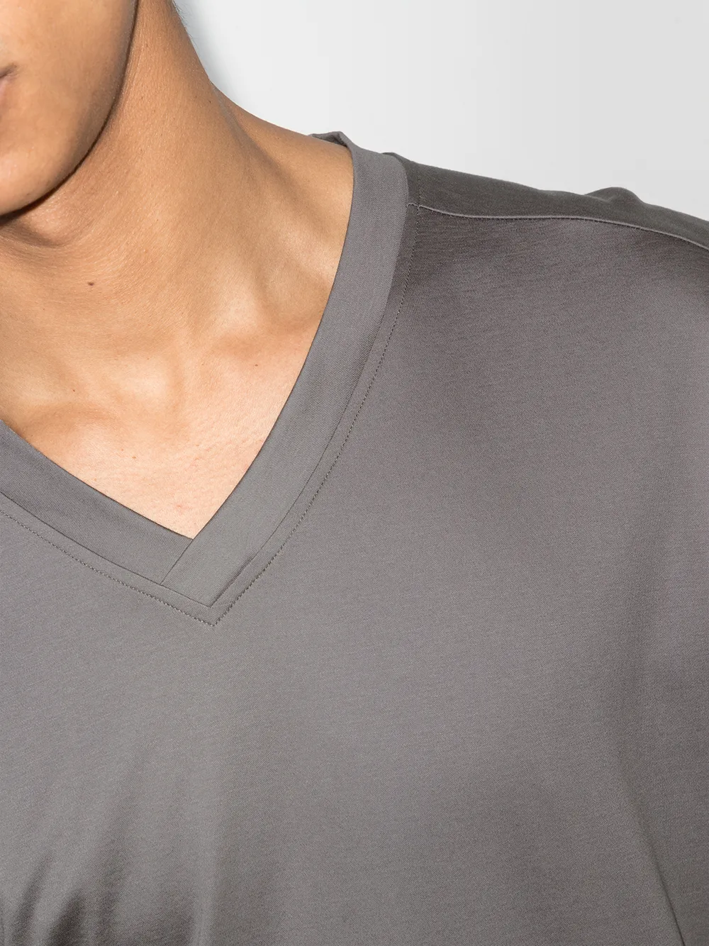 V-образный вырез, длинные рукава и прямой подол, цвет серый