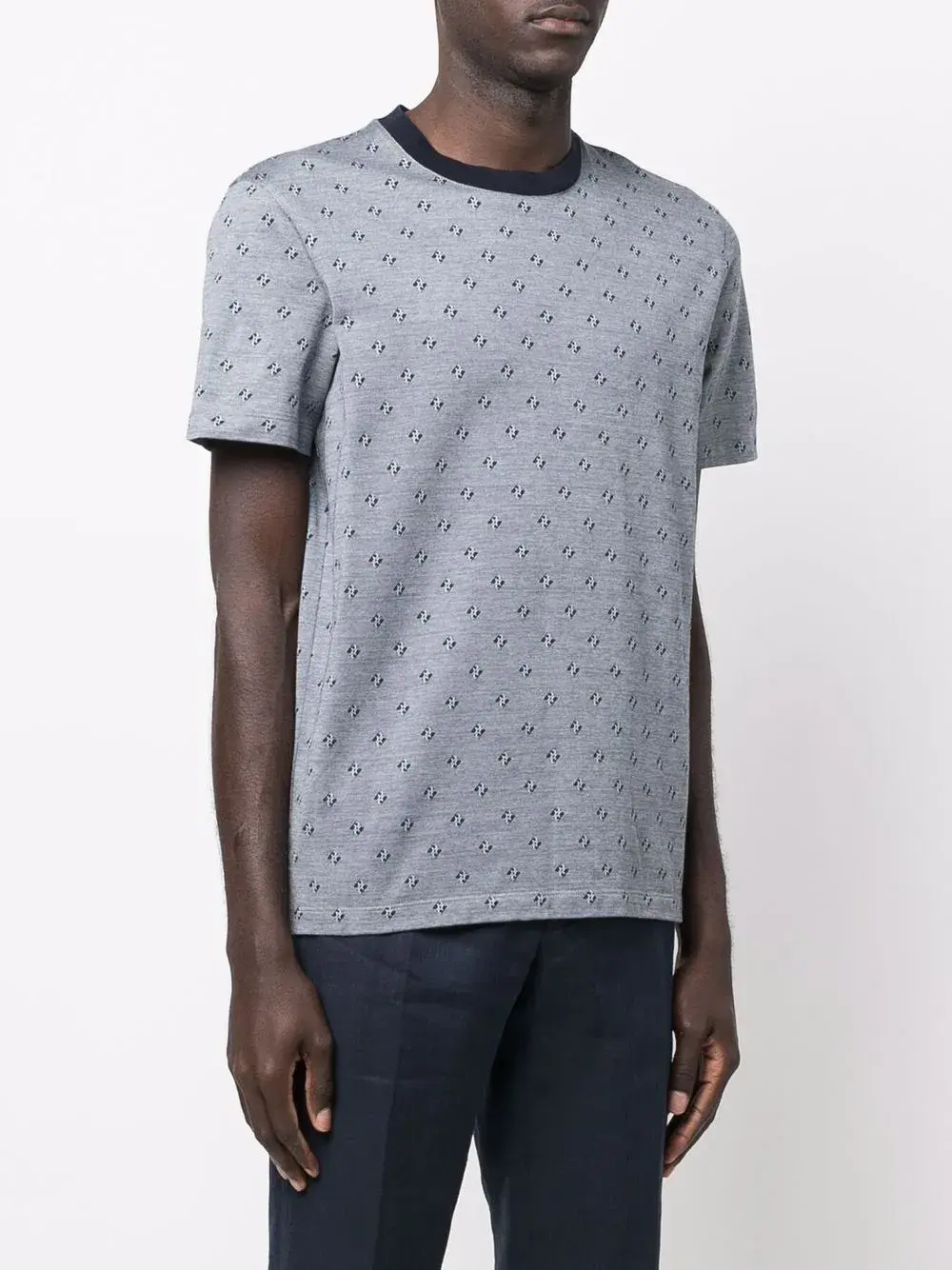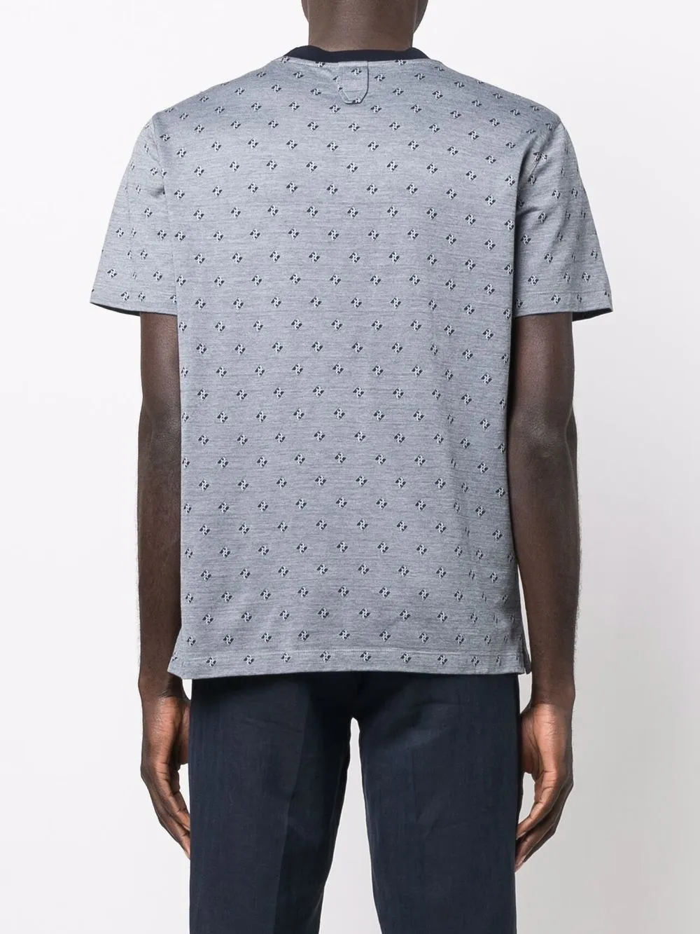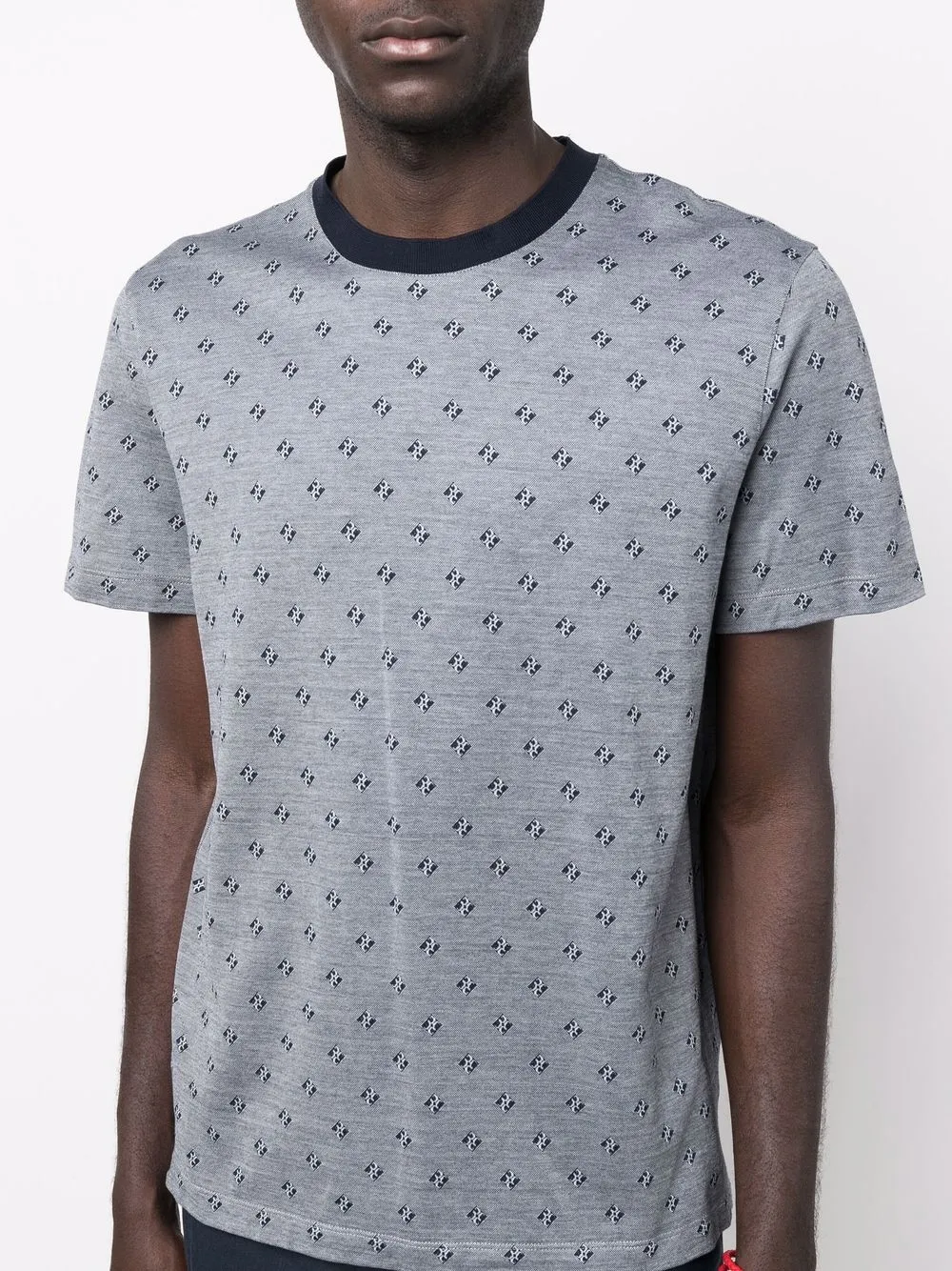 Сплошной принт с логотипом, контрастный воротник, круглый вырез, короткие рукава и прямой подол