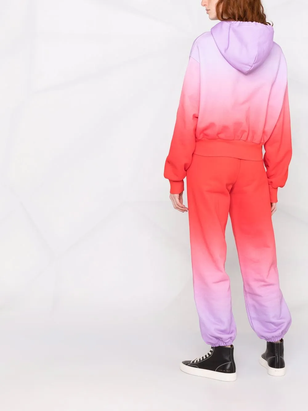 Градиентный эффект, принт с логотипом, эластичный пояс, два прорезных кармана по бокам и эластичные манжеты