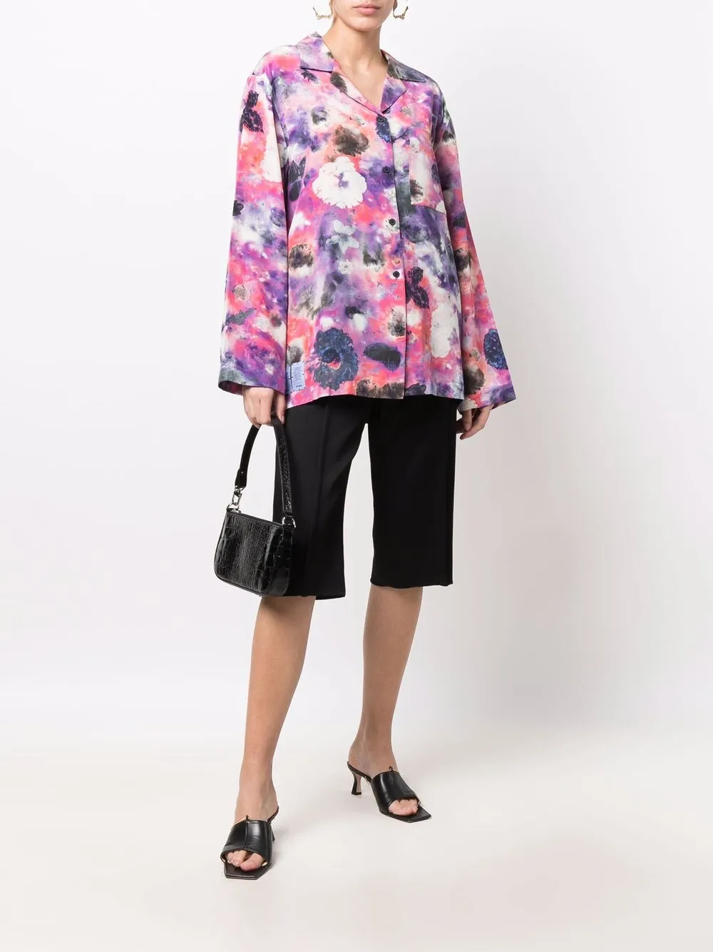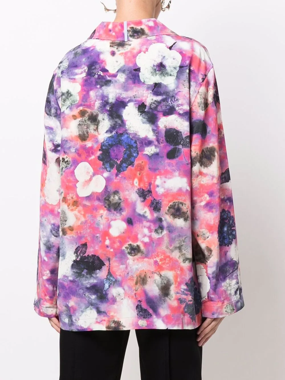 Сплошной цветочный принт, застежка на пуговицах спереди, длинные рукава и зазубренный воротник, цвет фиолетовый