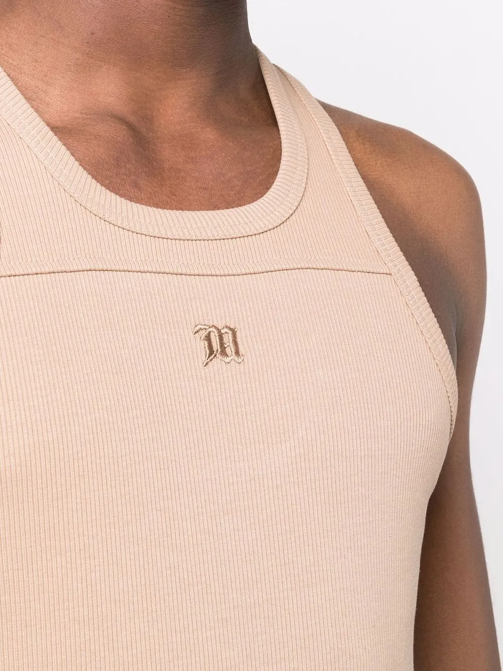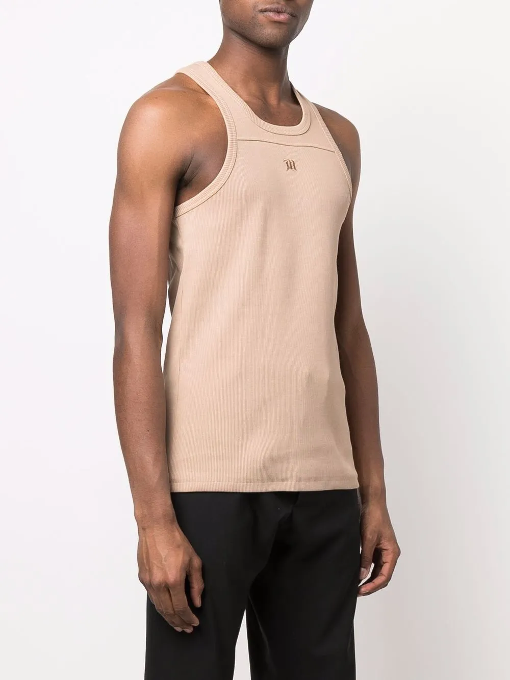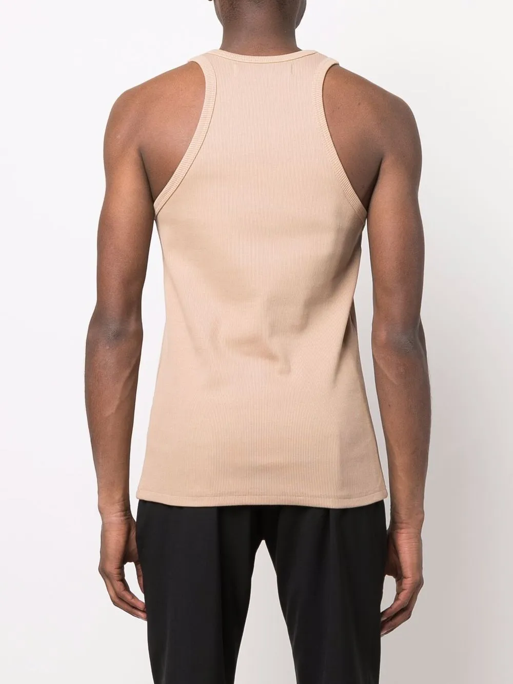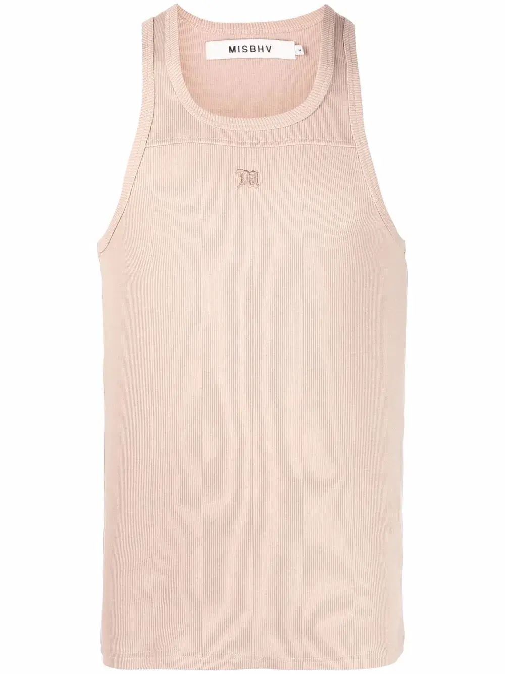 Вышитый логотип, трикотаж в рубчик, круглый вырез, без рукавов и прямой подол