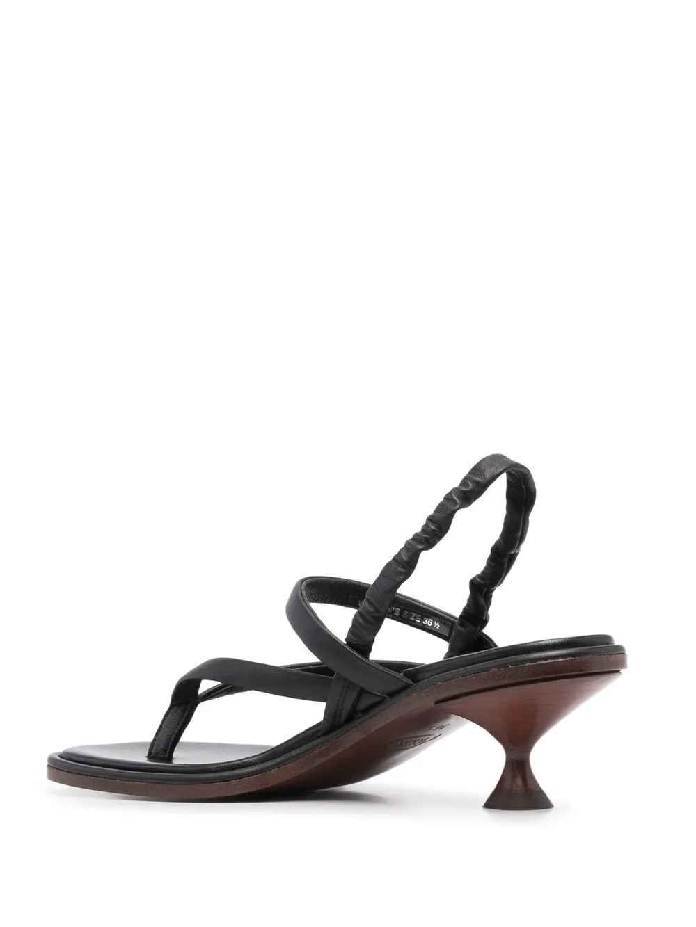 Черный, кожа, стринги, ремешок на пятке, открытый носок, логотип на стельке и низкий каблук