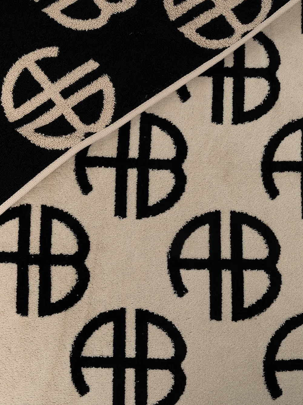 Бежевый, черный, хлопок, сочетание двух оттенков, узор с изображением монограммы, сплошной принт с логотипом и полотенечная ткань