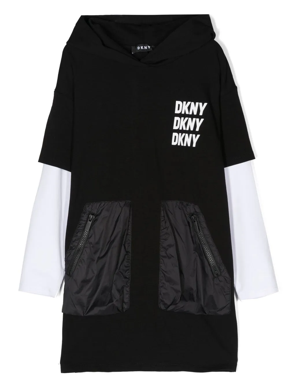 Многослойное платье-свитер с капюшоном Dkny Kids, черный 9 543₽