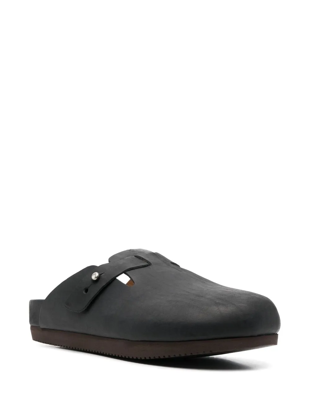 Черный, кожа, закругленный носок, застежка на пряжке, модель без застежки и плоская резиновая подошва