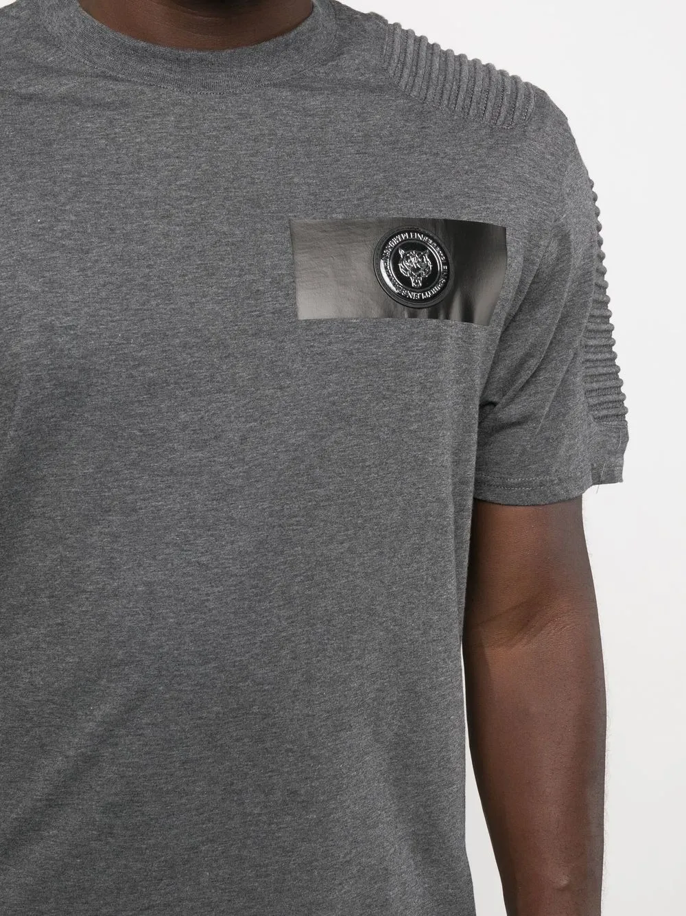Темно-серый, смесовый хлопок, знаковый декор Tiger с изображением тигра, принт с логотипом сзади, детали в рубчик, круглый вырез, короткие рукава и прямой подол