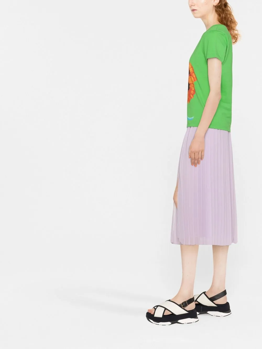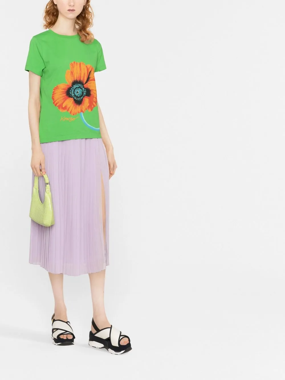 Ярко-зеленый, разноцветный, хлопок, ткань джерси, цветочный принт спереди, логотип спереди, круглый вырез, короткие рукава и прямой подол