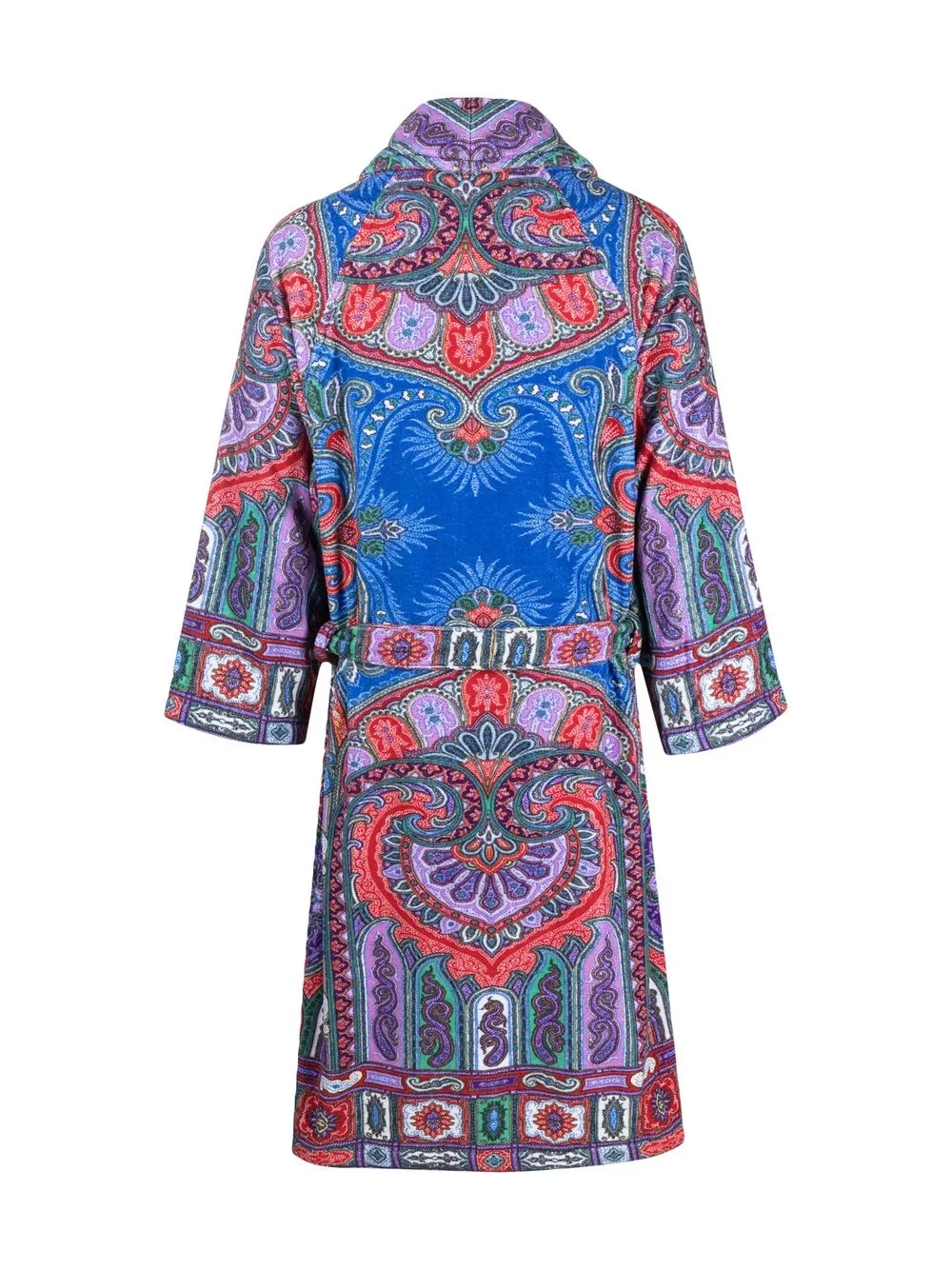 Разноцветный, хлопок, принт пейсли, лацканы-шалька, ремень на талии, длинные рукава, прямой подол и два накладных кармана спереди