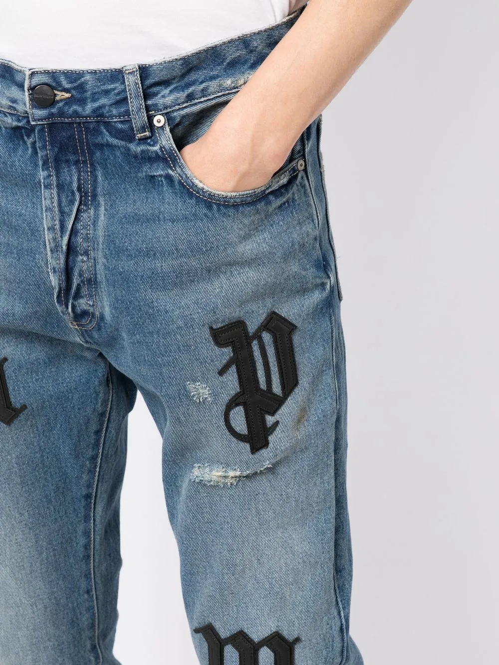 Декорированные джинсы скинни Palm Angels, синий 82 077₽