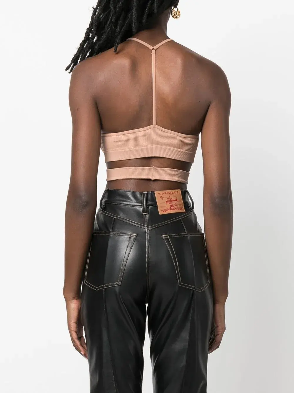 Эластичный материал, трикотаж в рубчик, вырезные детали, вырез-петля халтер, без рукавов и бралетт