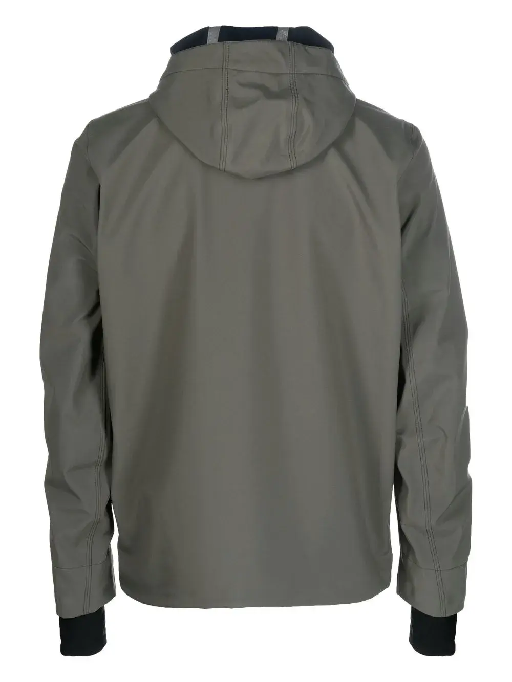 Оливковый, отделка лентой с логотипом, нашивка с логотипом на груди, классический капюшон, застежка на молнии спереди, длинные рукава и прямой подол