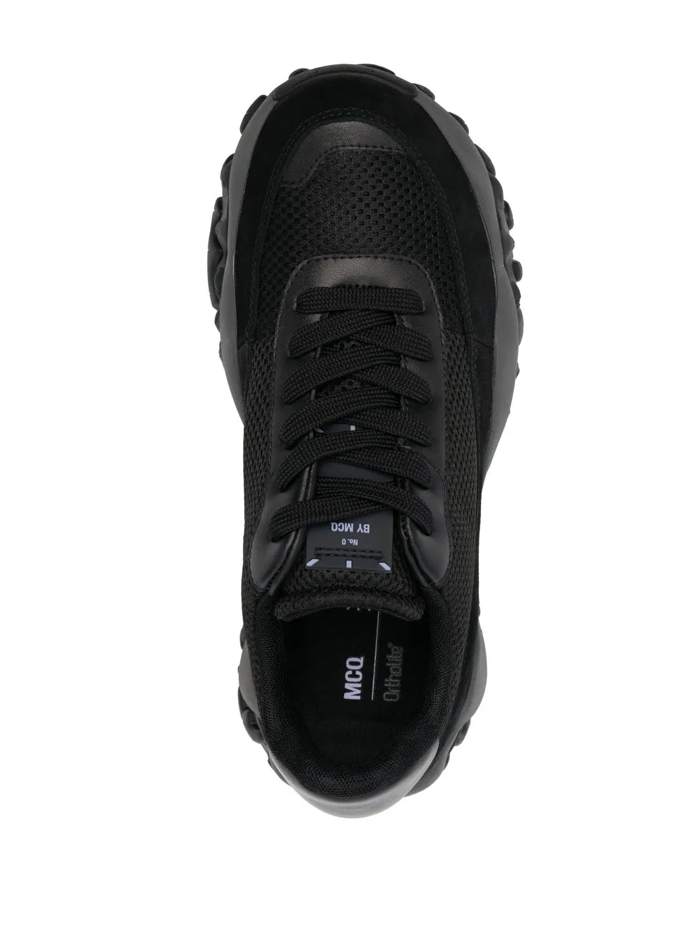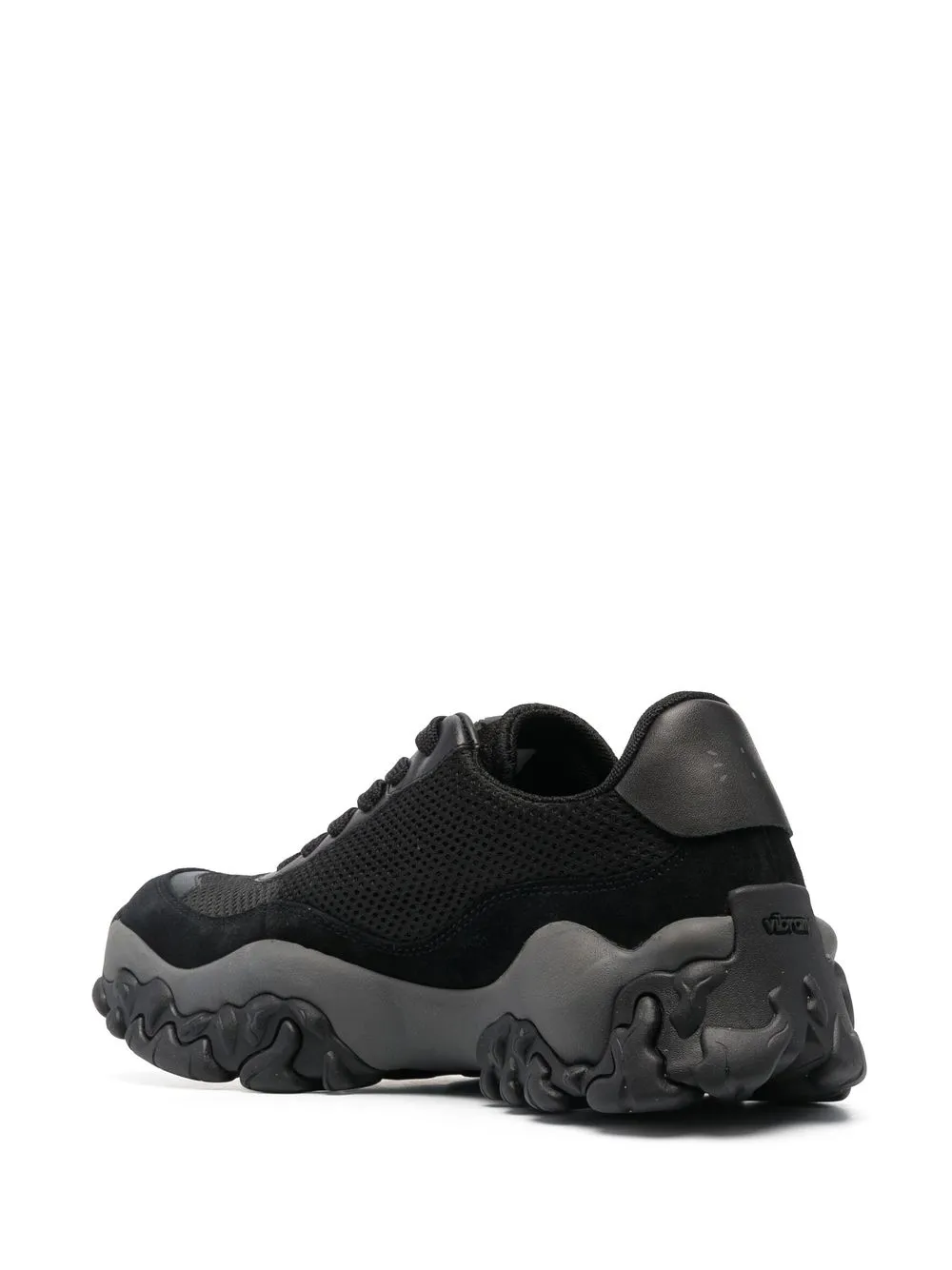 Черный, кожа, сетчатые вставки, нашивка с логотипом на язычке, закругленный носок, шнуровка спереди, стелька с логотипом и массивная резиновая подошва