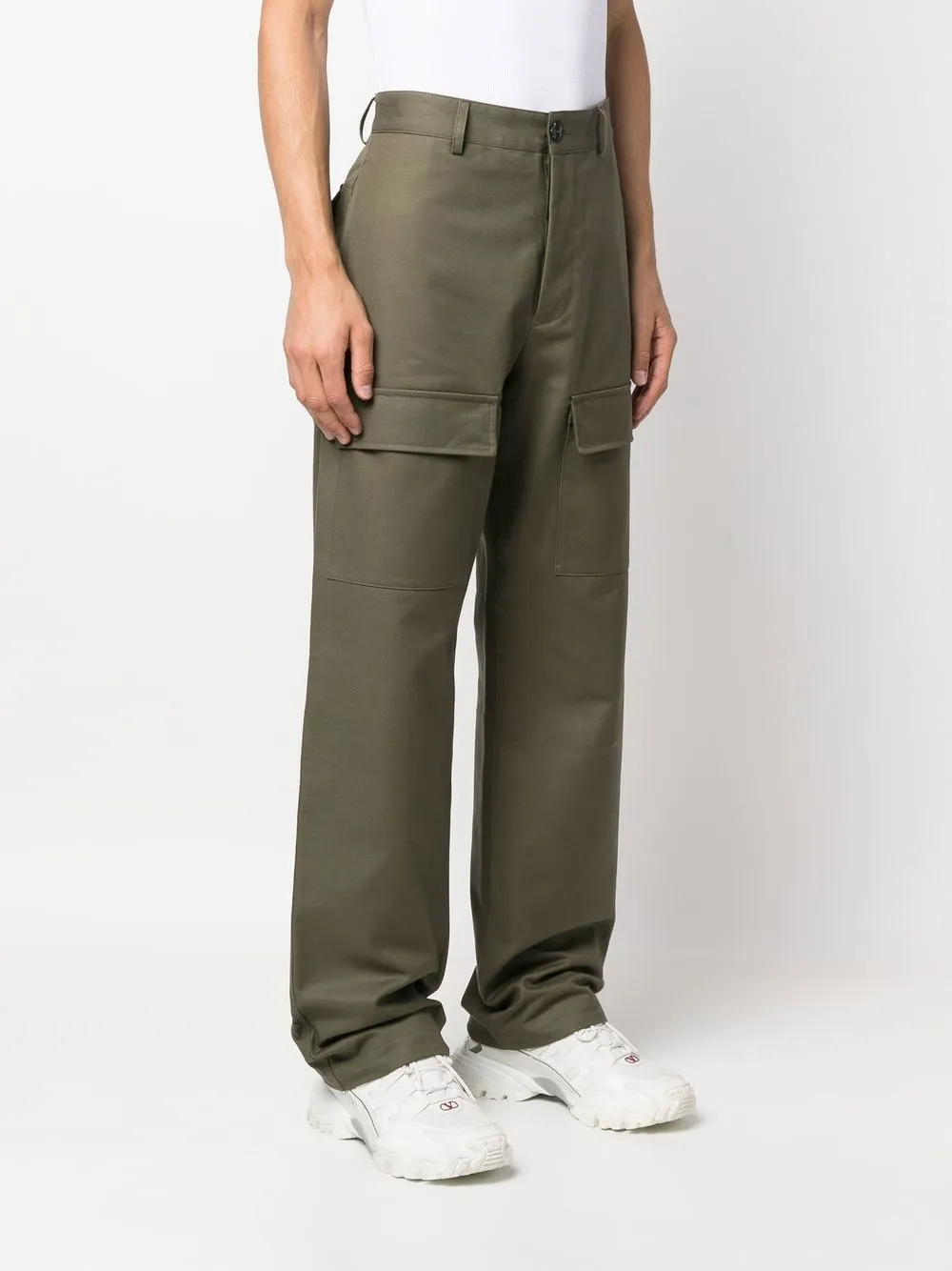 Хаки, хлопок, средняя посадка, нашивка с логотипом сзади, застежка на молнии и пуговице спереди, петли для ремня, прямой крой, два кармана карго спереди и два кармана с клапанами сзади