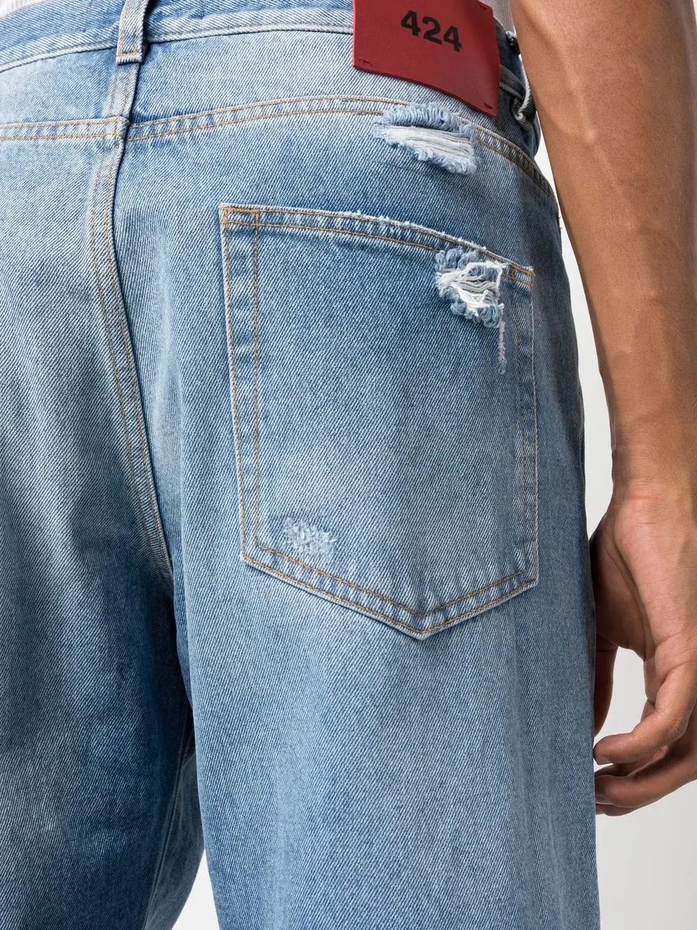 Прямые джинсы с эффектом потертости 424, синий 39 109₽