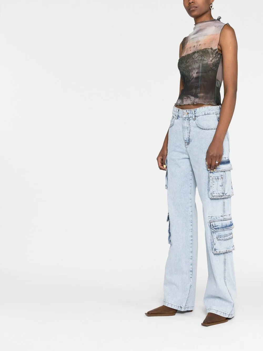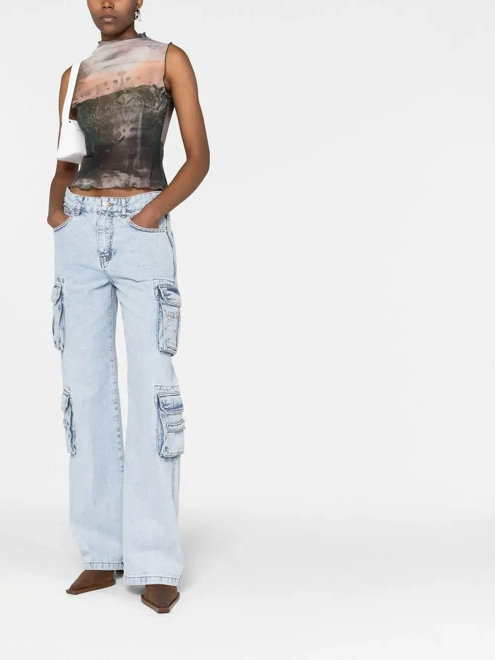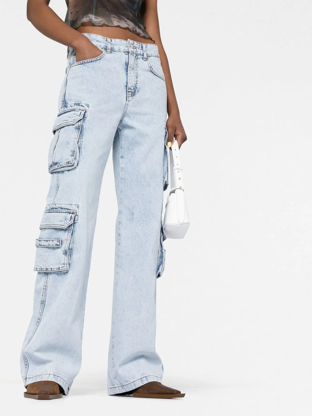 Синий, хлопок, деним, низкая посадка, петли для ремня, нашивка с логотипом сзади, ширинка на пуговицах, прямой подол, пять карманов и накладные карманы