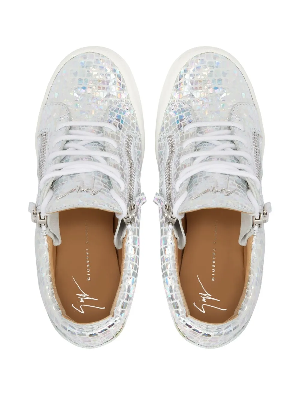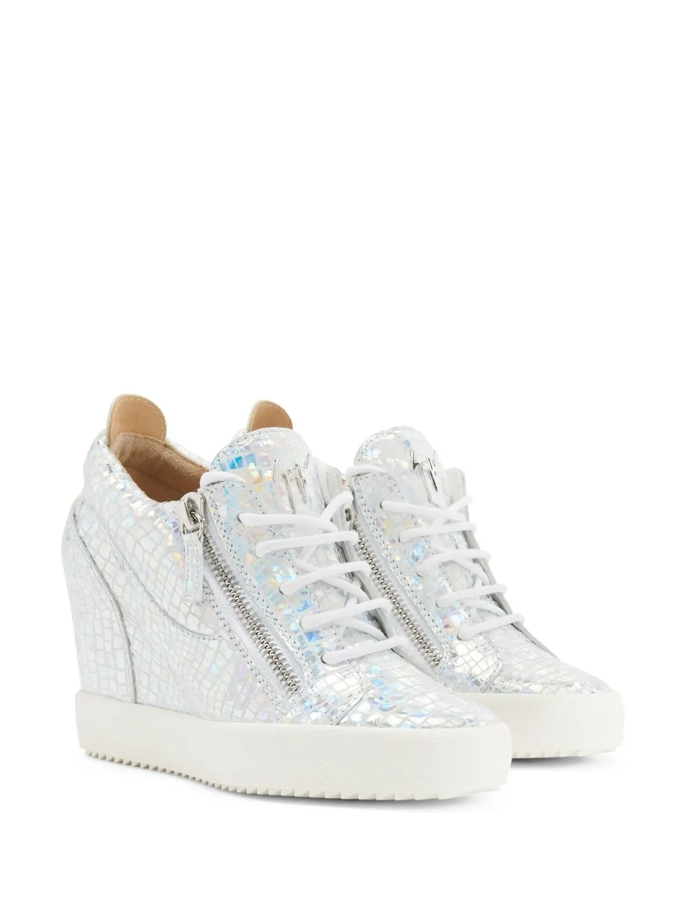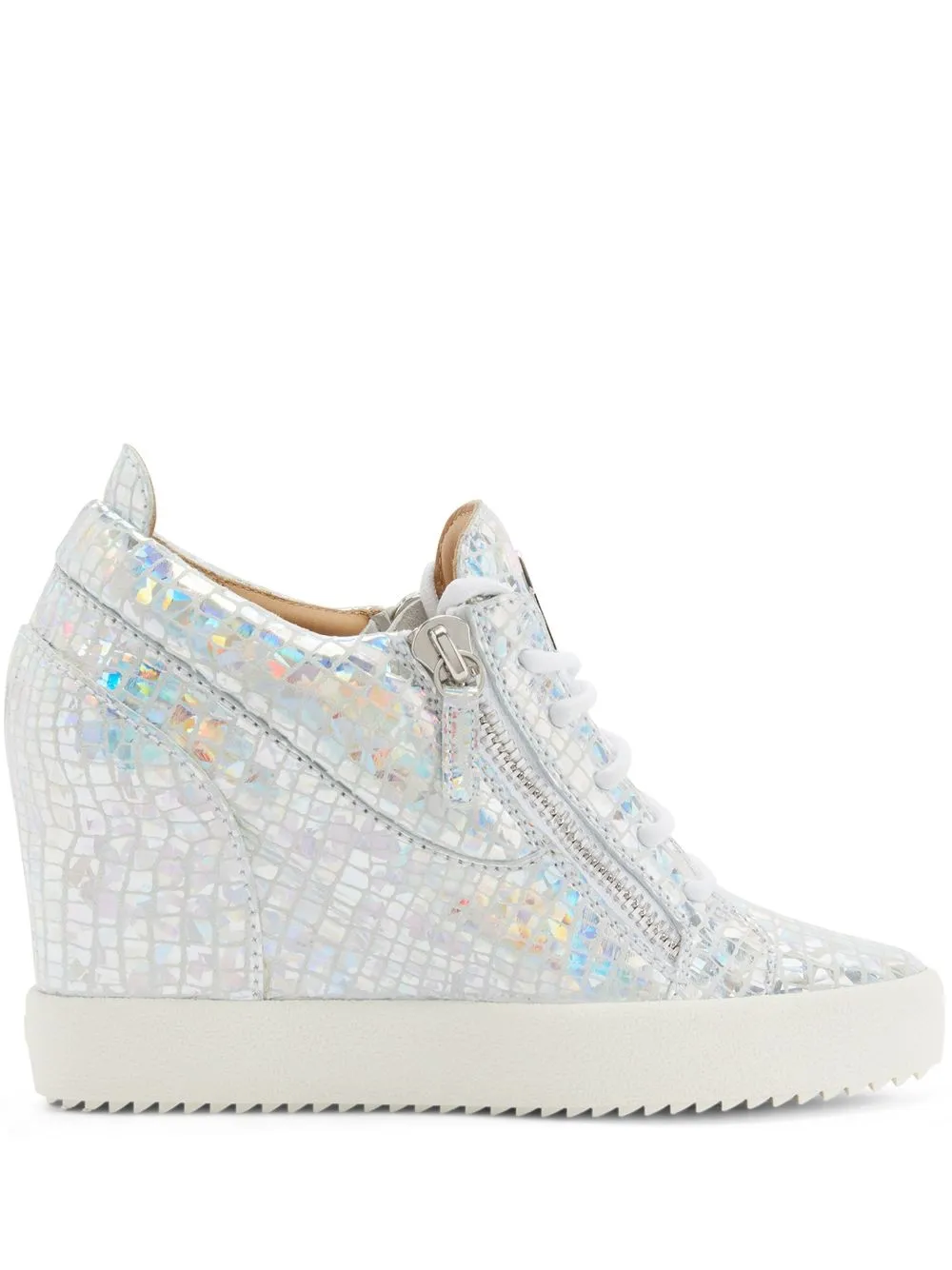 Кроссовки на танкетке с эффектом металлик Giuseppe Zanotti, серебристый