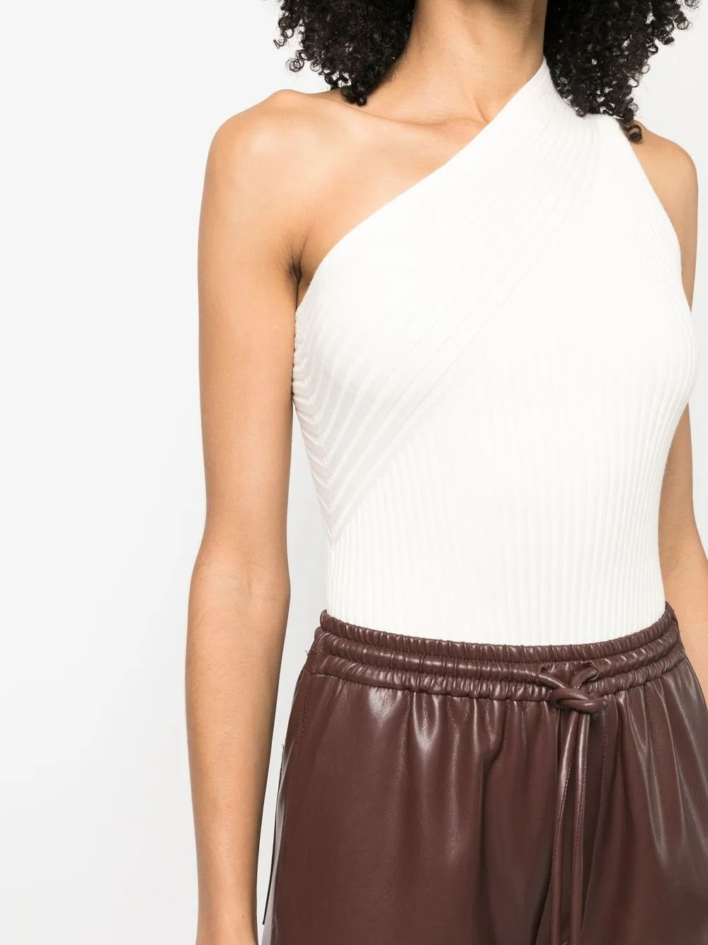 Расцветка Cloud White, трикотажный материал, асимметричный вырез и открытые плечи.