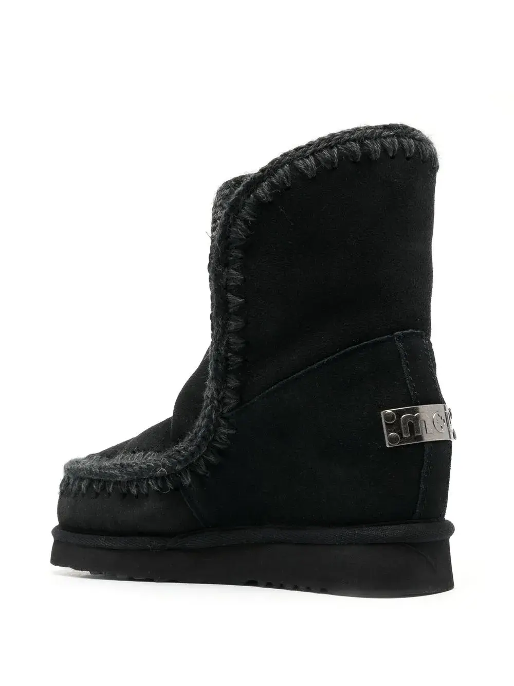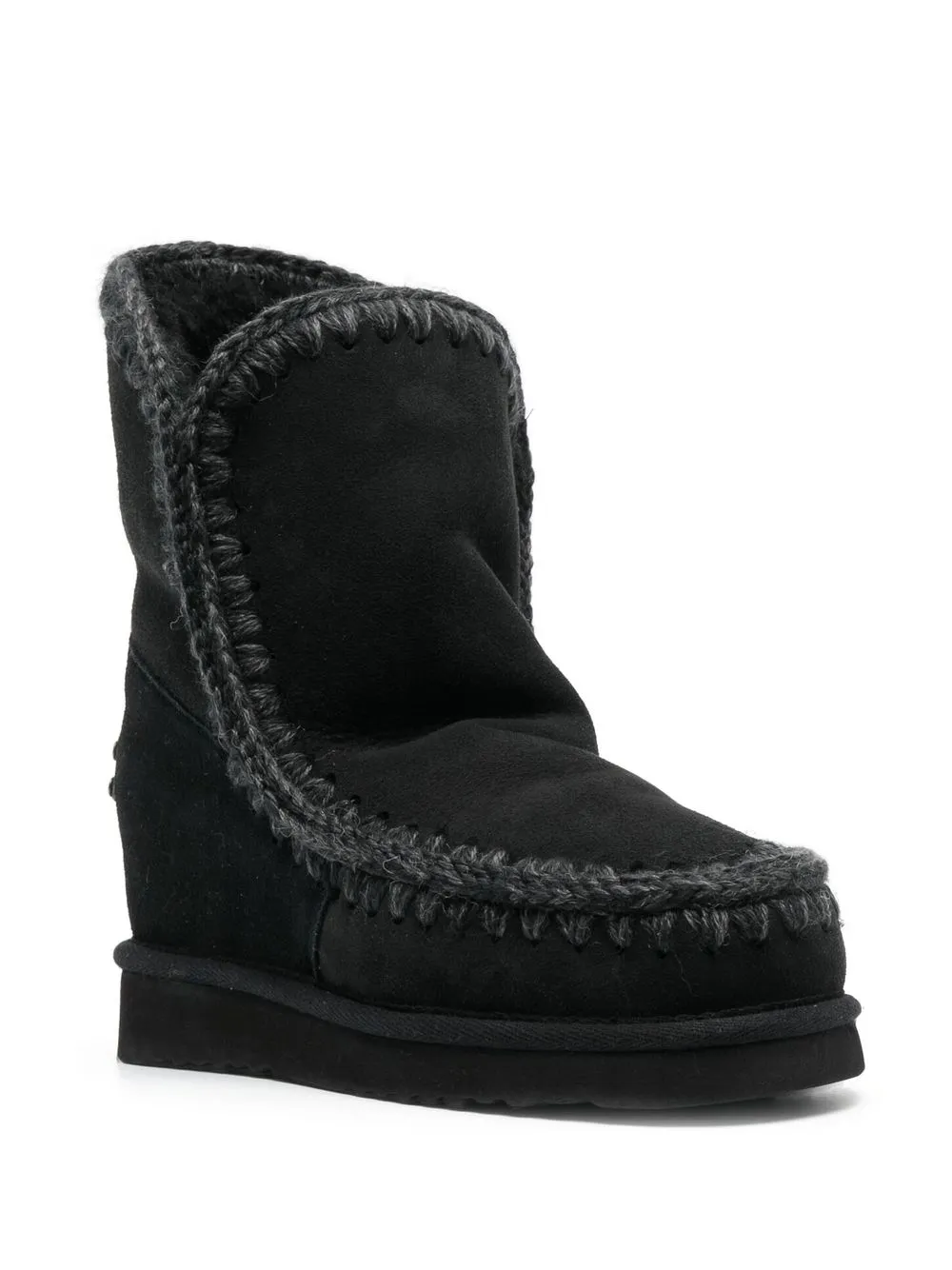 Черный, телячья кожа, высота по щиколотку, модель без застежки, подкладка из искусственного меха, обметочный шов, нашивка с логотипом сзади, закругленный носок и плоская резиновая подошва
