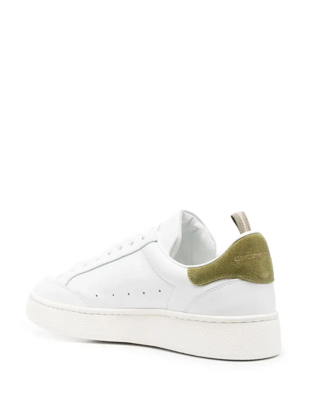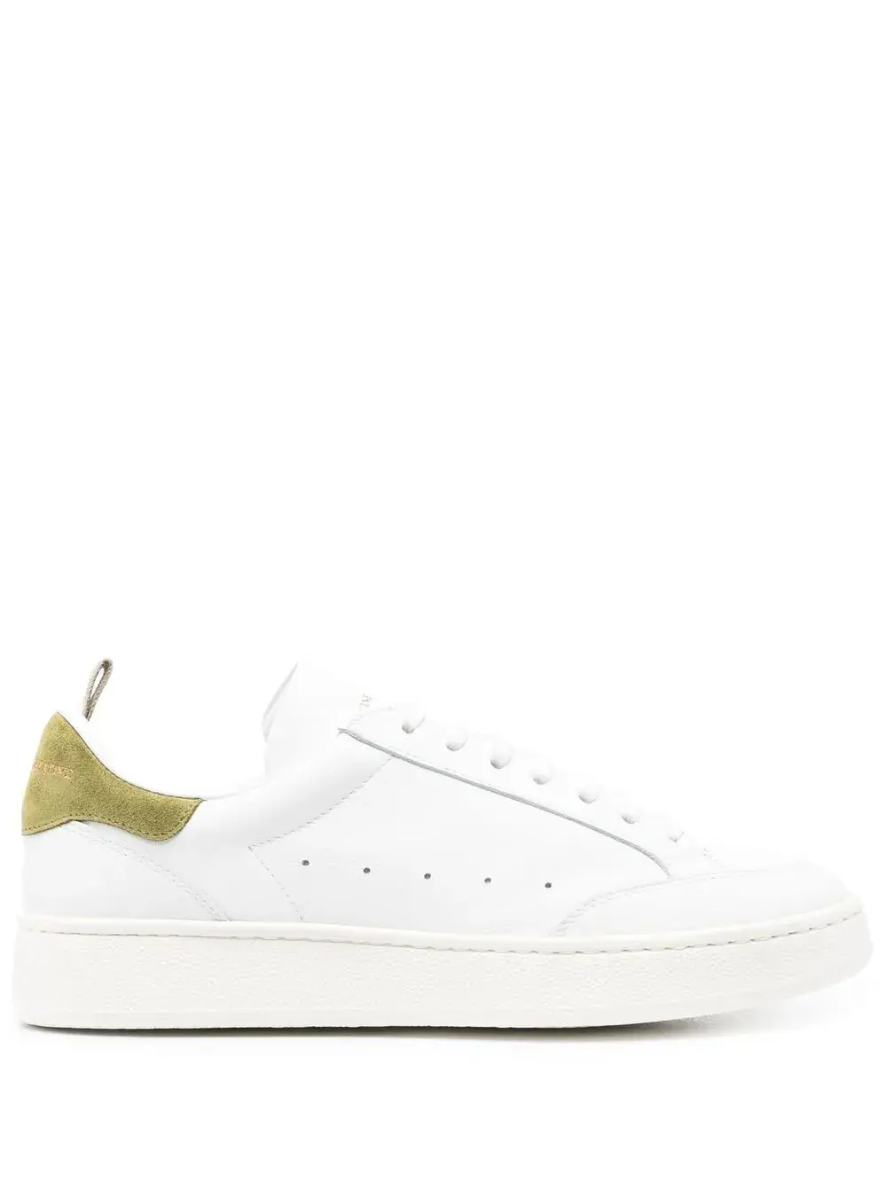Белый, телячья кожа, перфорация, вставки, закругленный носок, шнуровка спереди, язычок с логотипом, плоская резиновая подошва и задник с логотипом
