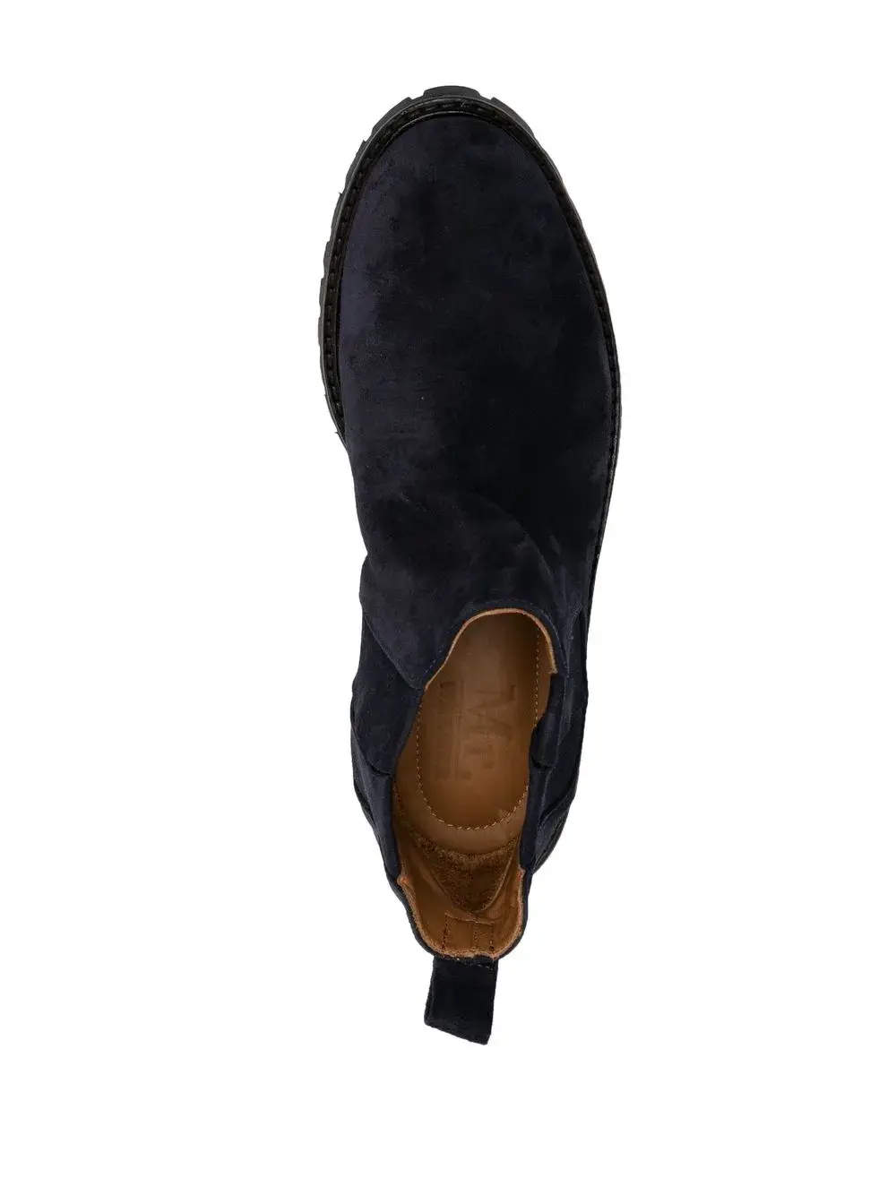 Темно-синий, замша из телячьей кожи, эластичные боковые вставки, петля для подтягивания сзади, закругленный носок, высота по щиколотку, модель без застежки и резиновая подошва